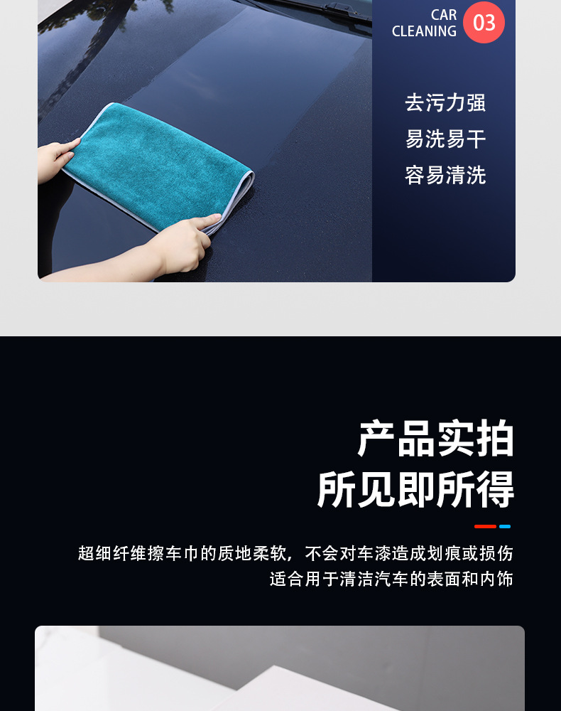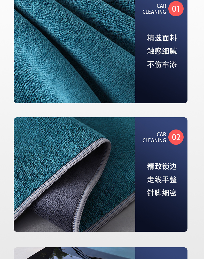 자동차 닦는 세차 수건은 두꺼워지고 물을 흡수하고 흔적을 남기지 않으며 자동차 페인트를 손상시키지 않습니다. 스웨이드 대형 걸레 이중층 복합 수건