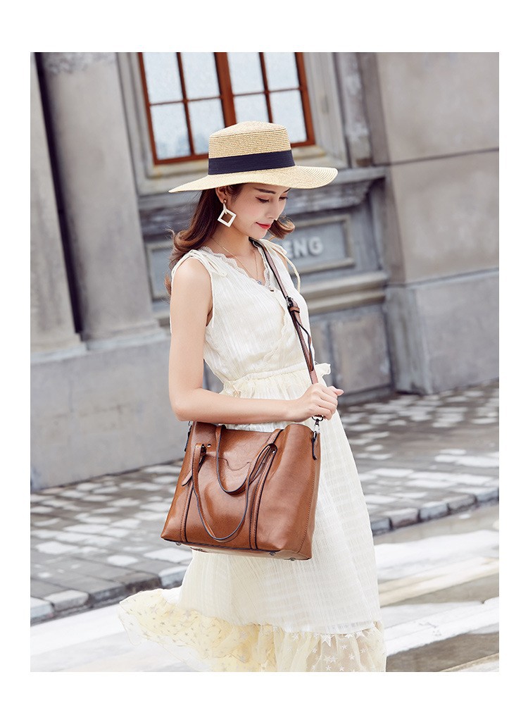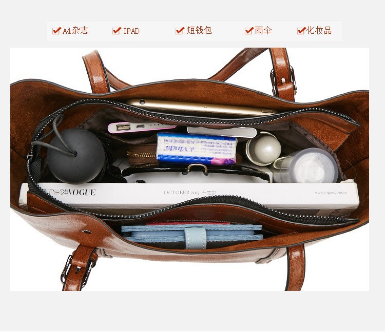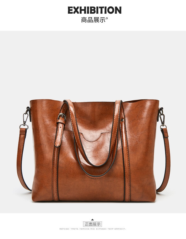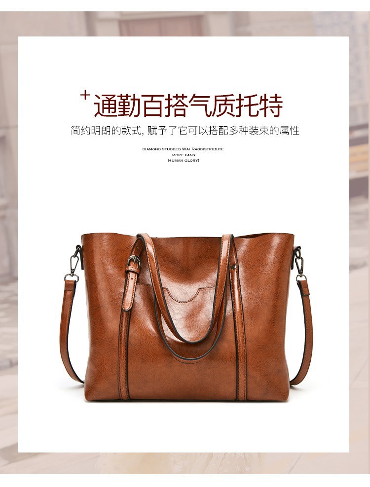 대외 무역 새로운 패션 유럽과 미국 여성 가방 패션 왁스 가죽 휴대용 토트 백 간단한 여성 어깨 가방 머리카락 세대