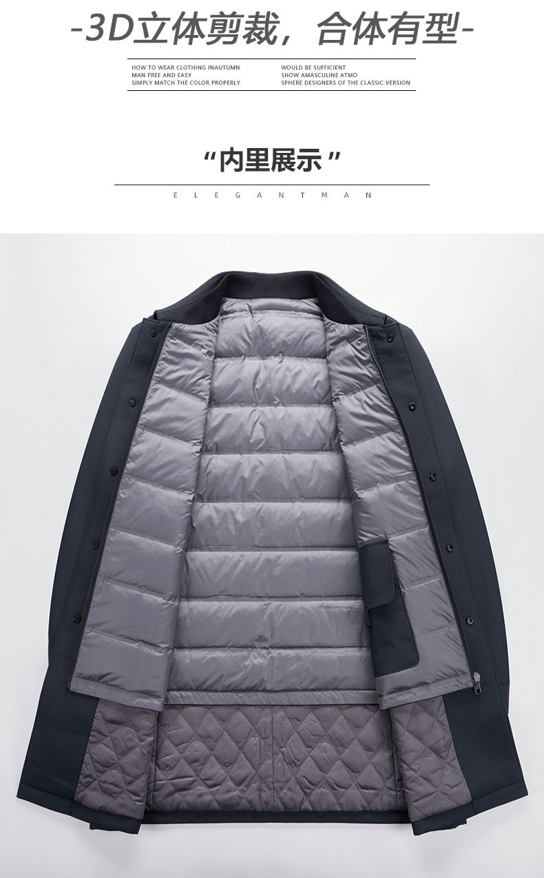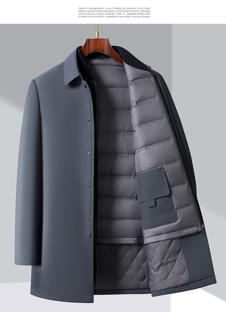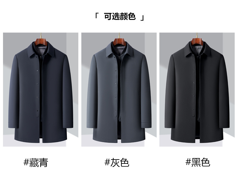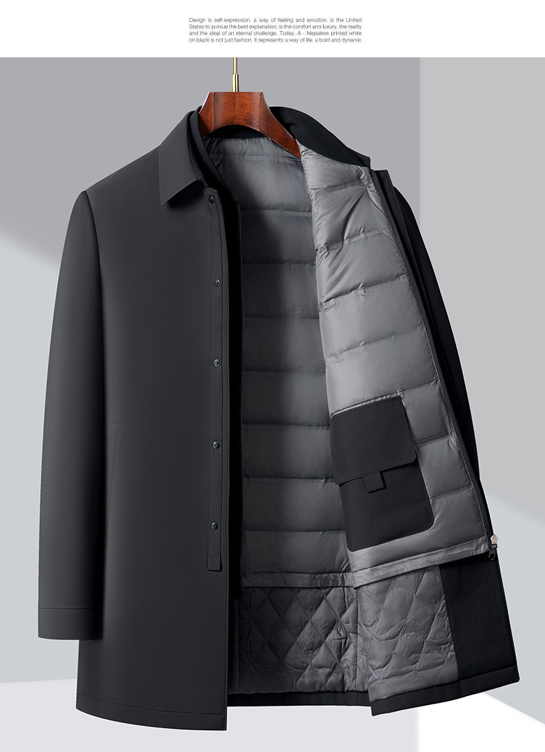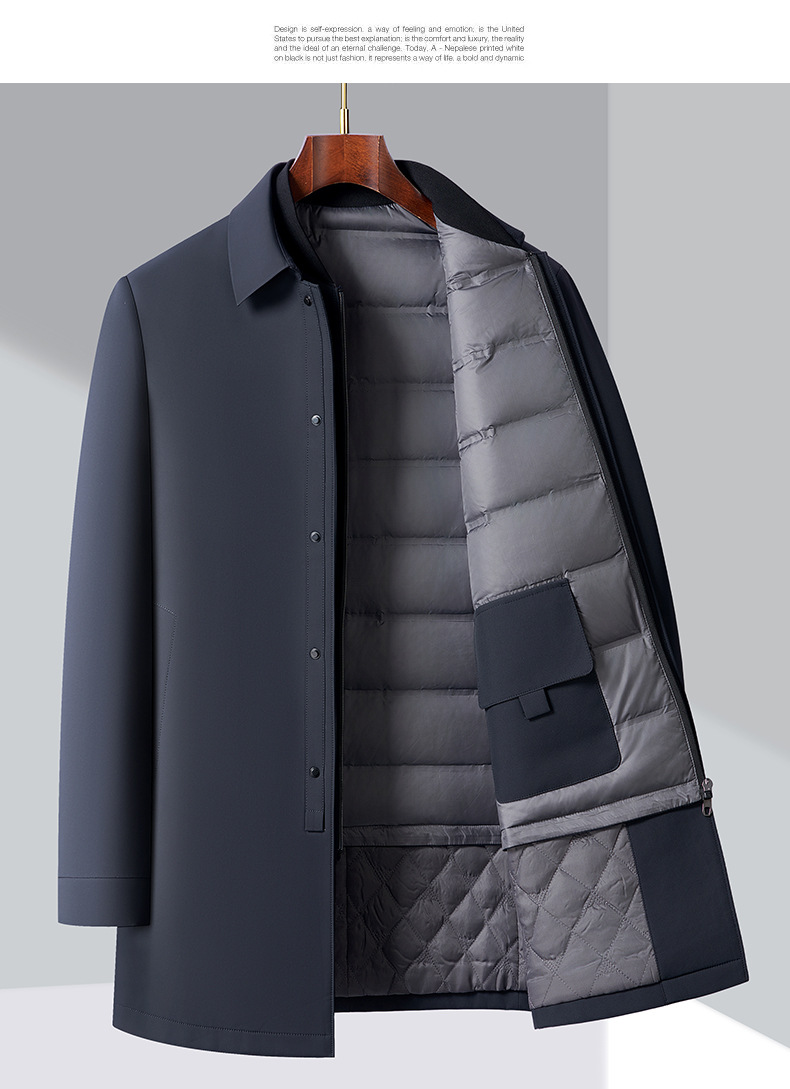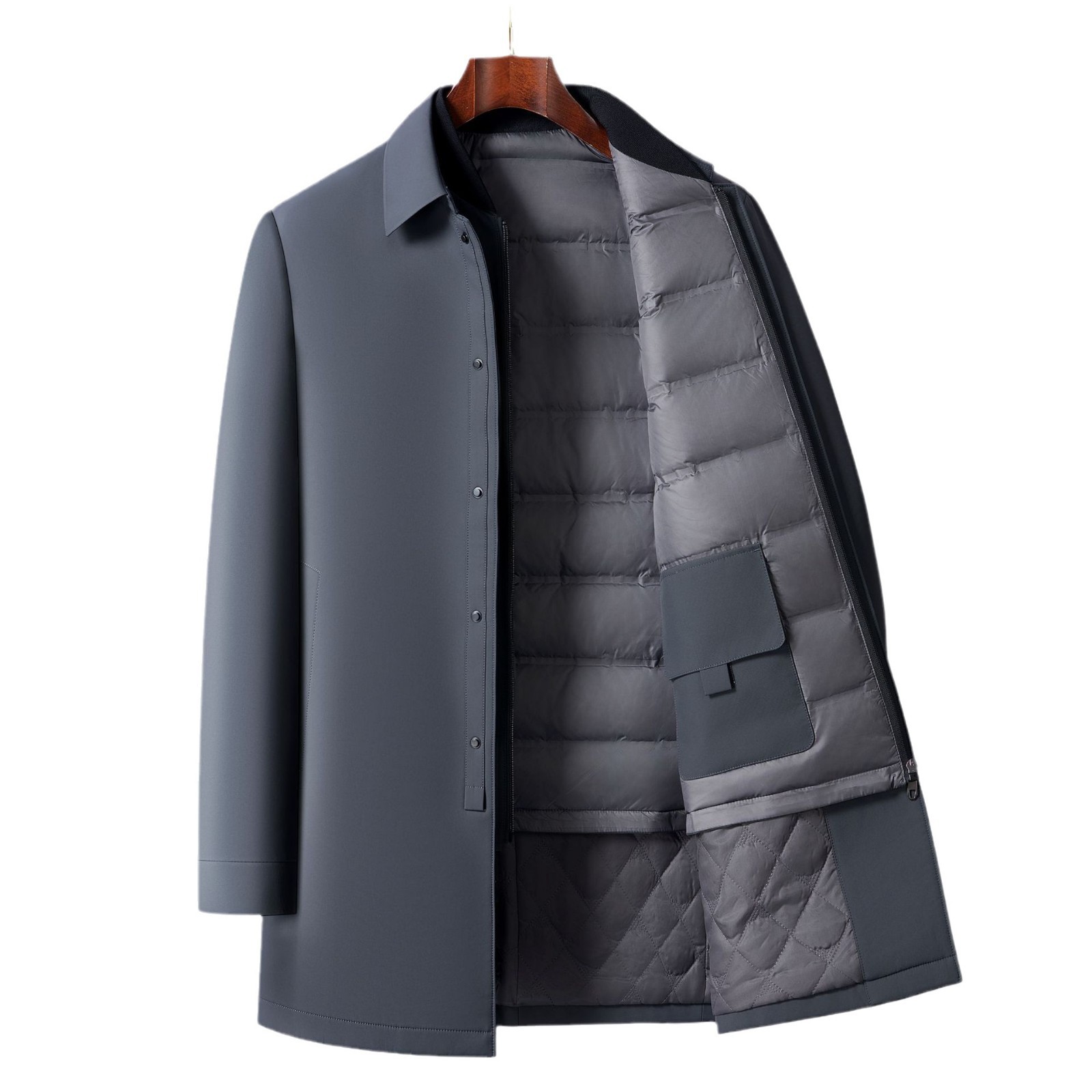 새로운 하이 퀄리티 90% 화이트 덕 다운 재킷 남자 두꺼운 분리 가능한 옷깃 중간 길이의 이그제큐티브 재킷 코트