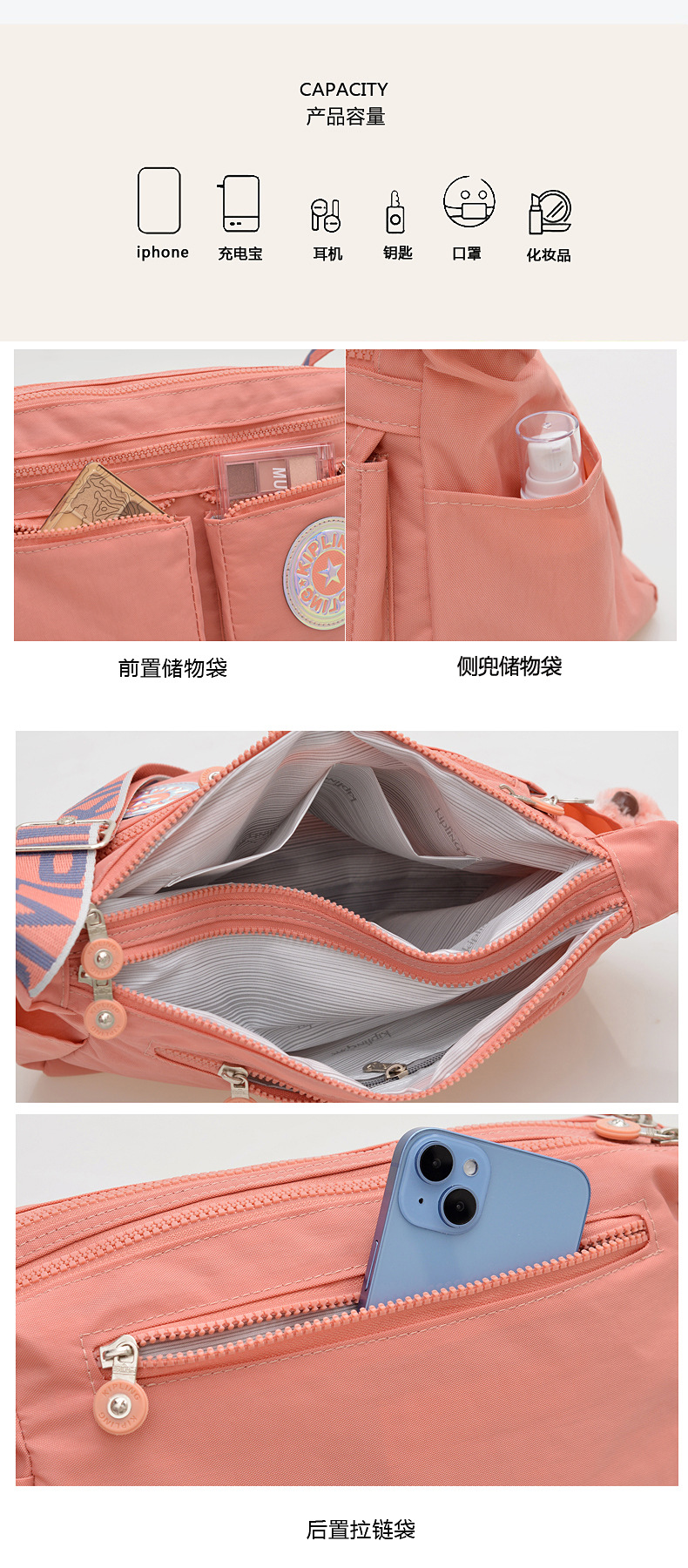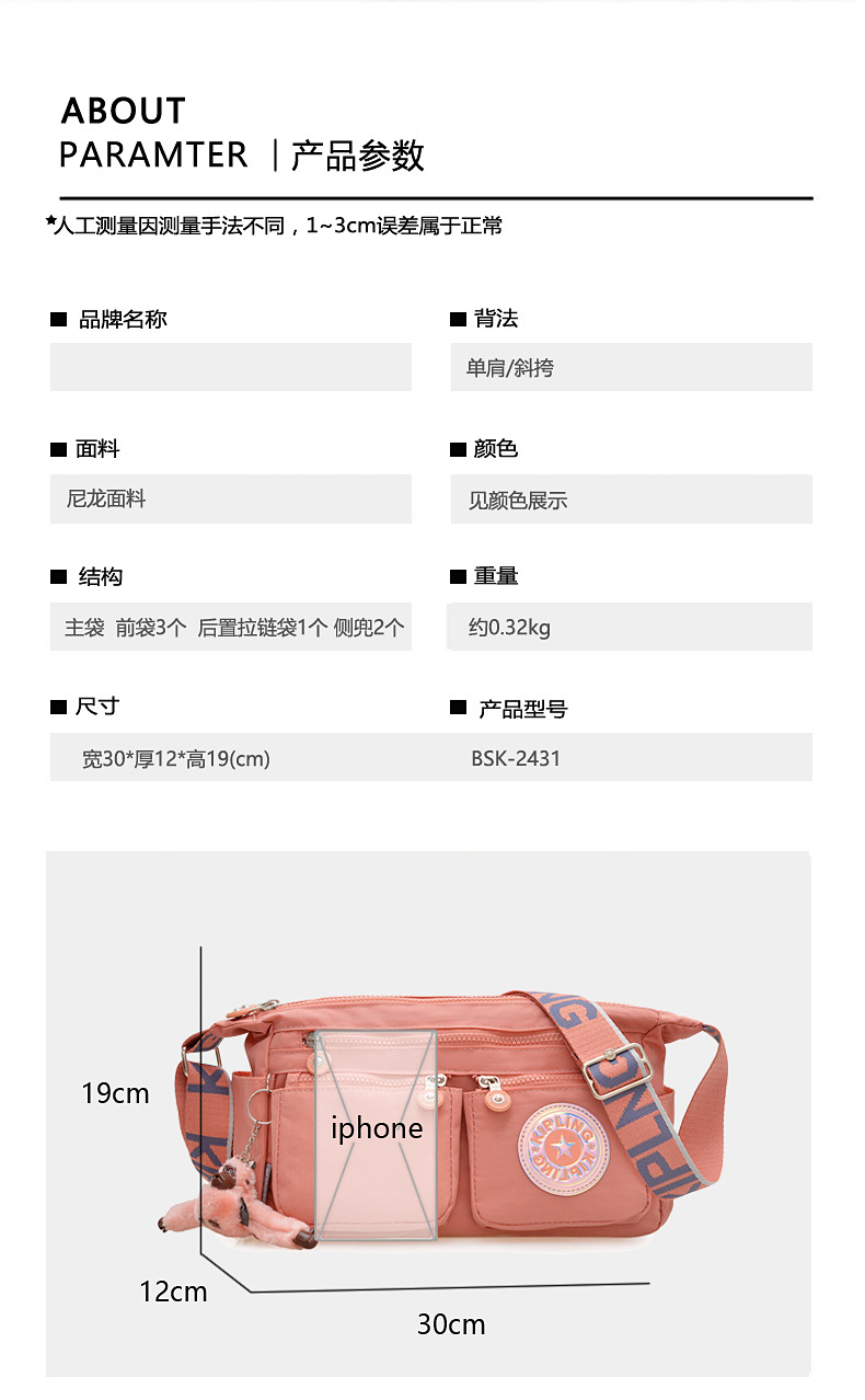 새로운 원숭이 가방 어깨 가방 멀티 구획 방수 나일론 천 메신저 가방 경량 kp 여행 가방 공장 도매