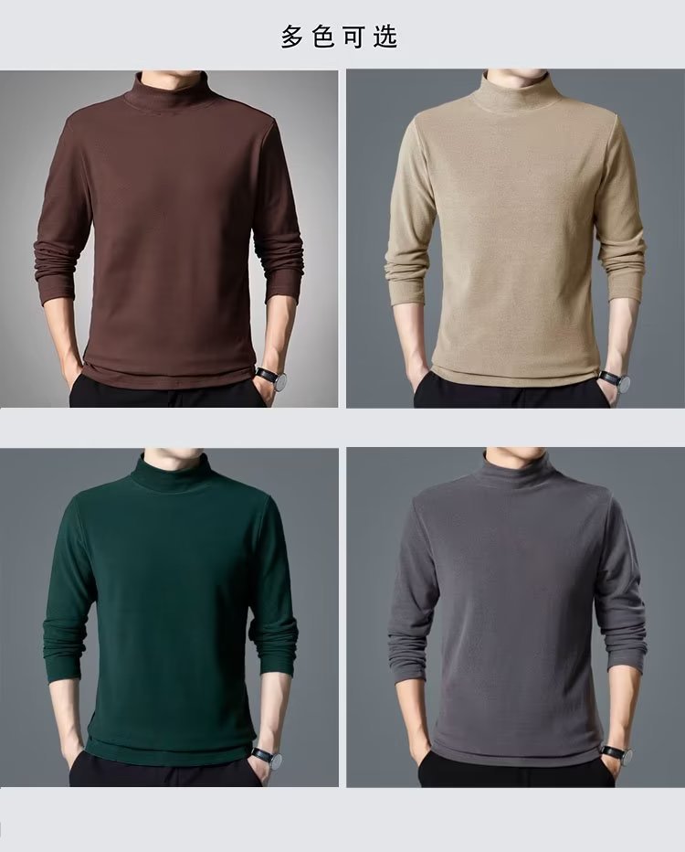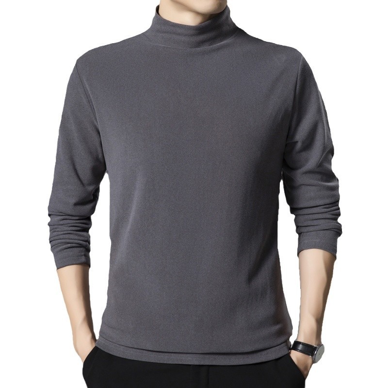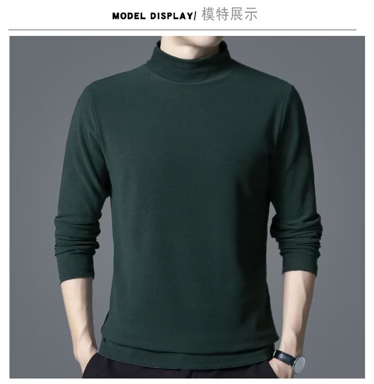가을과 겨울 독일 벨벳 긴팔 티셔츠 남자 양면 벨벳베이스 셔츠 봄과 가을 반 높이 칼라 샌딩 올 매치 가을 탑