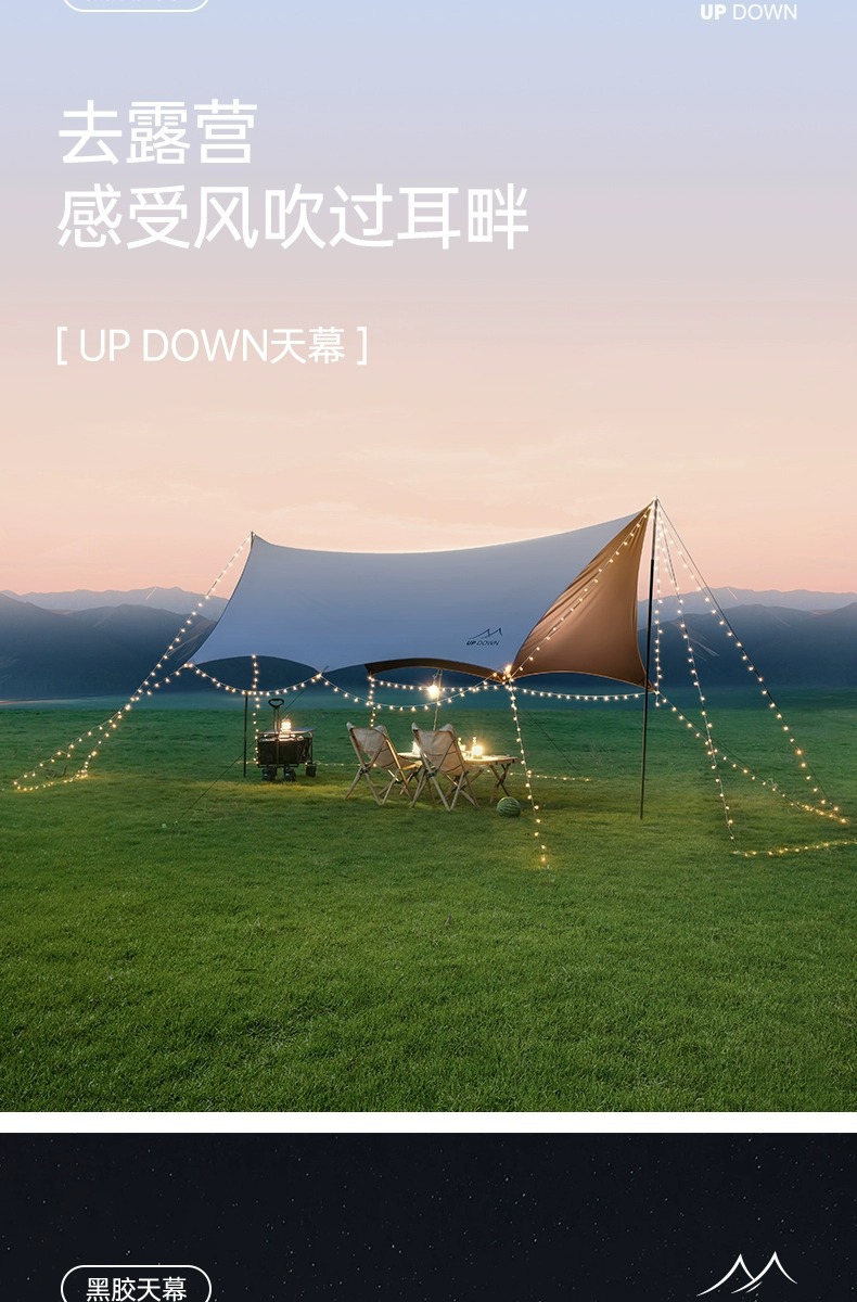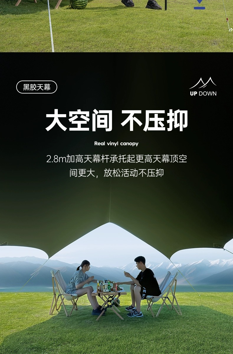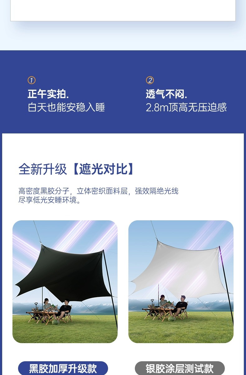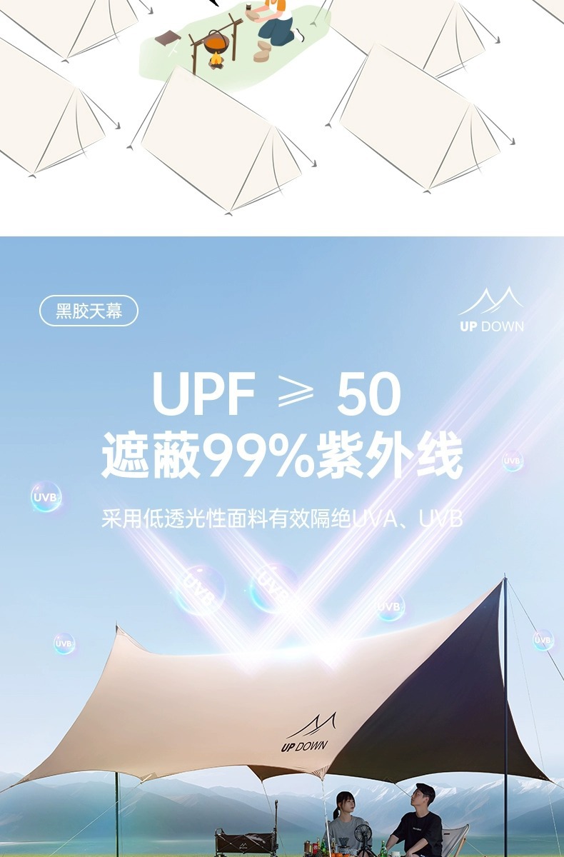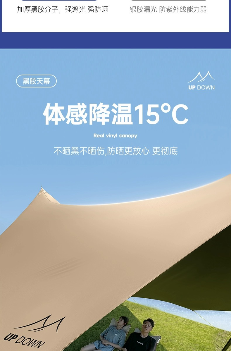 업 다운 블랙 접착제 캐노피 텐트 야외 풀 세트 캠핑 장비 대형 선 스크린 코팅 피크닉 방비 차양