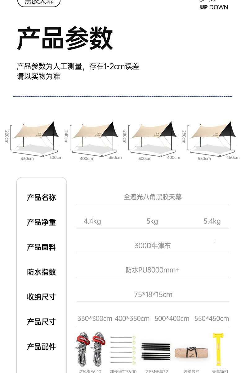 26㎡커피 [2.8m 완비 + 볼드 캐노피 폴 + 6겹 두꺼워짐 + 자외선 차단] 특대형 / 12~20인 권장