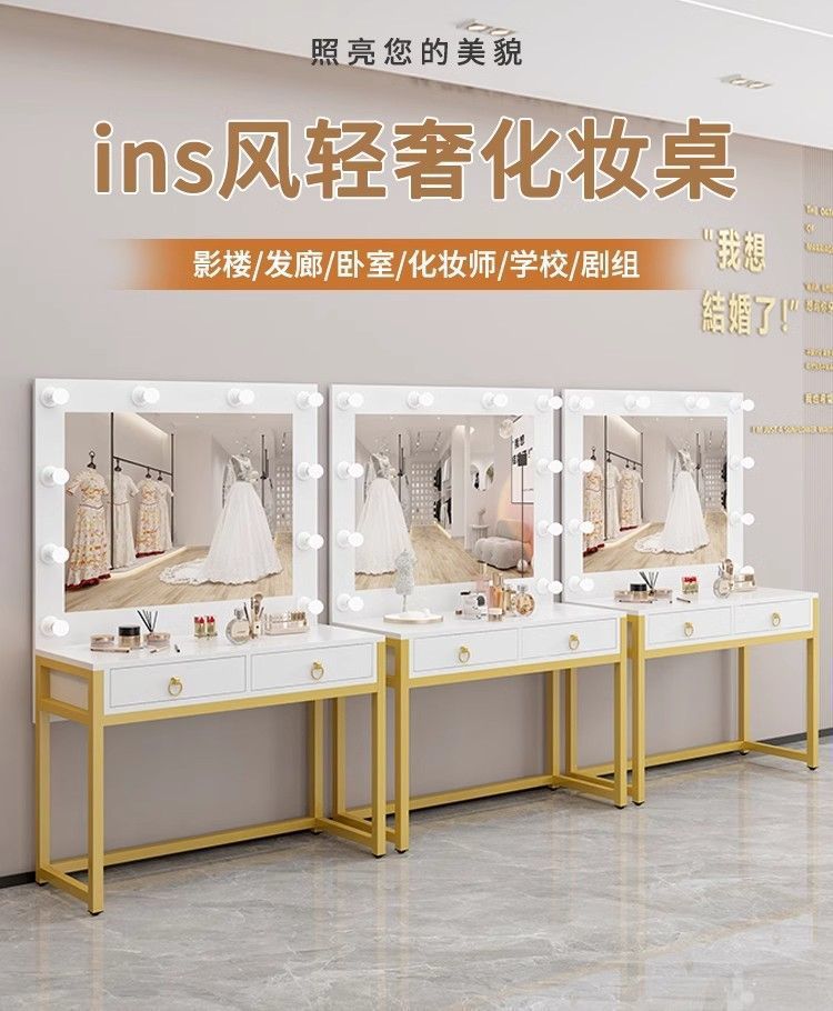 밝은 거울로 스튜디오 드레싱 테이블 통합 신부 가게 학교 메이크업 아티스트 특별 메이크업 테이블 뷰티 살롱 드레싱 테이블
