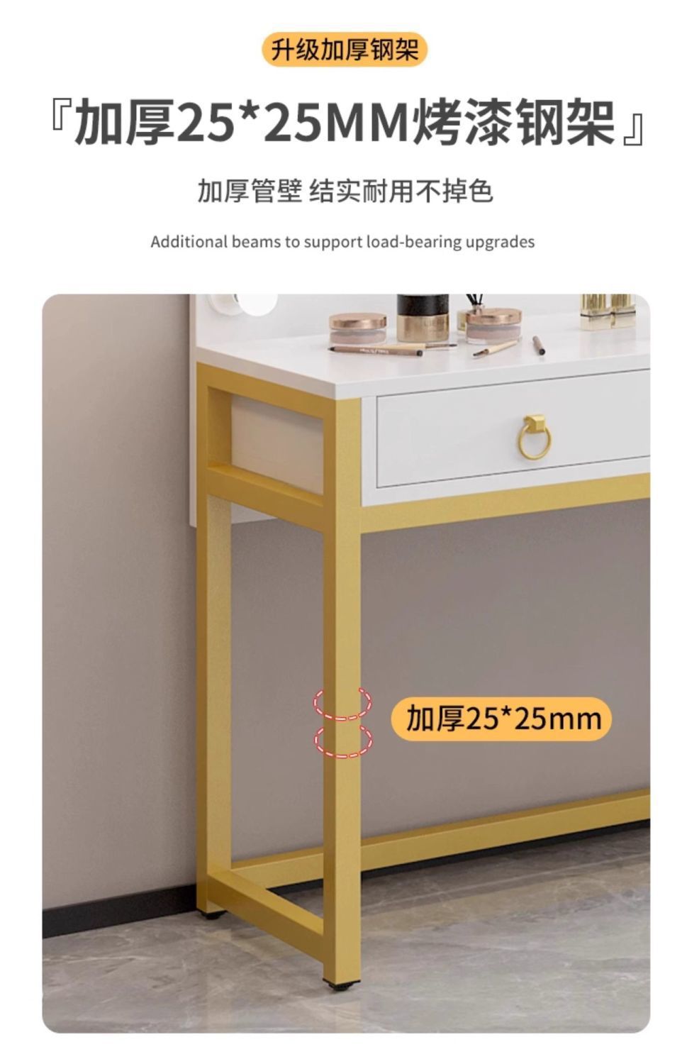 화이트 + 골드 프레임 + 스툴 [80*40]
