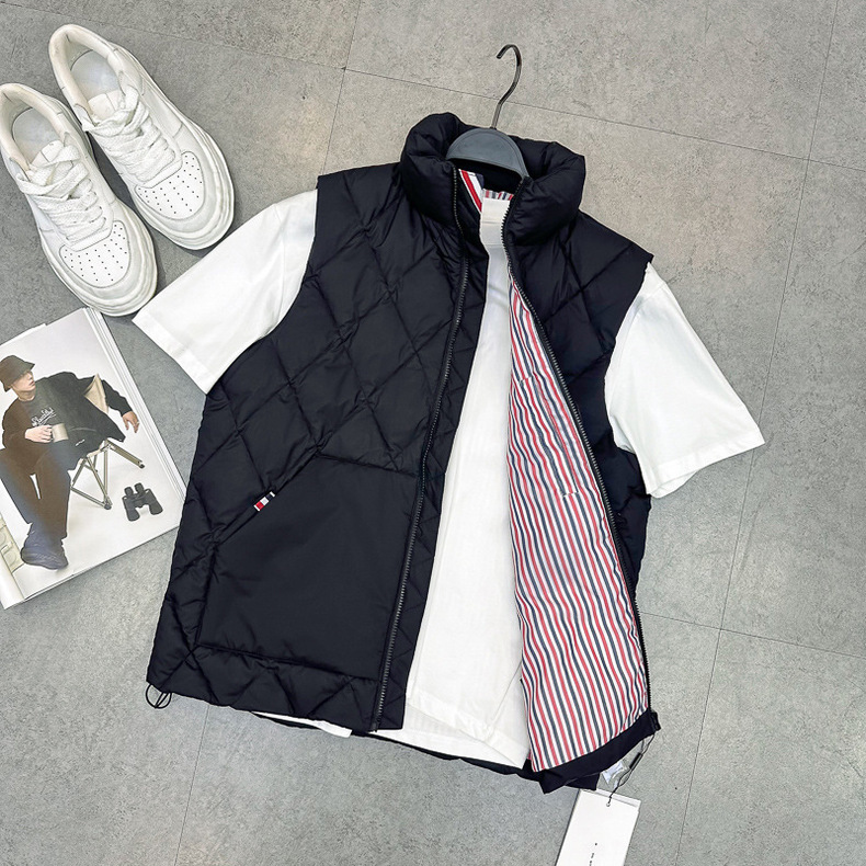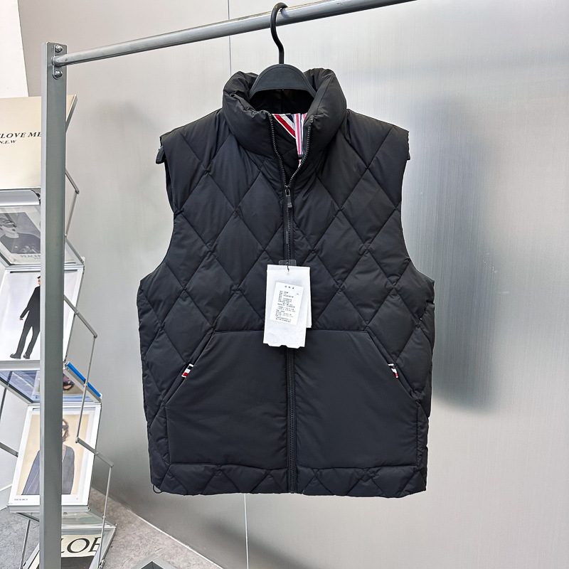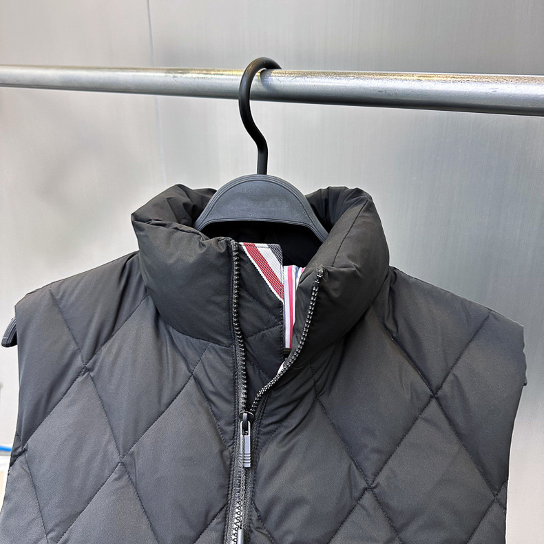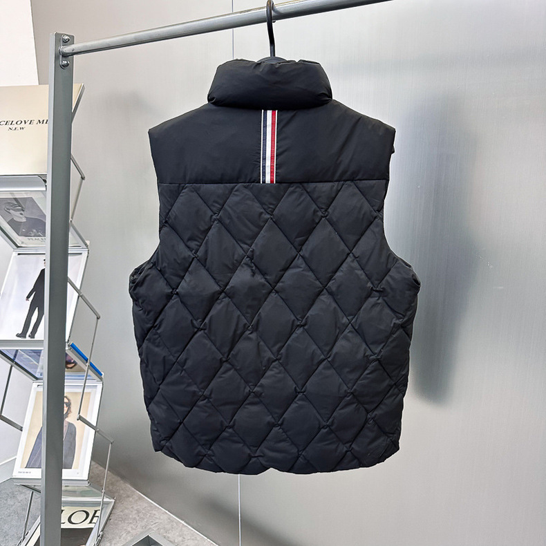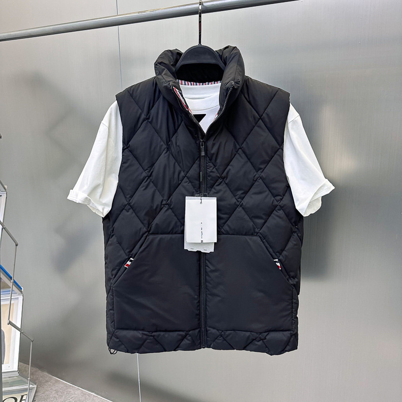남자 겨울 다이아몬드 격자 무늬 다운 조끼 풀오버 패션 블랙 남성 간단한 다운 조끼 TB1AGE4299