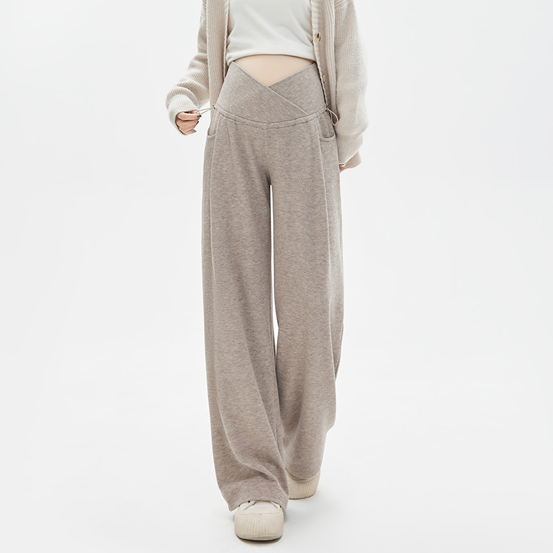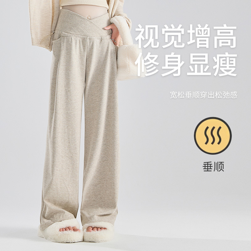 임신 한 여성의 바지 봄과 가을 넓은 다리 바지 가을과 겨울 기모 임신 작은 캐주얼 바지 플러스 사이즈 가을