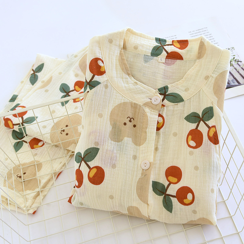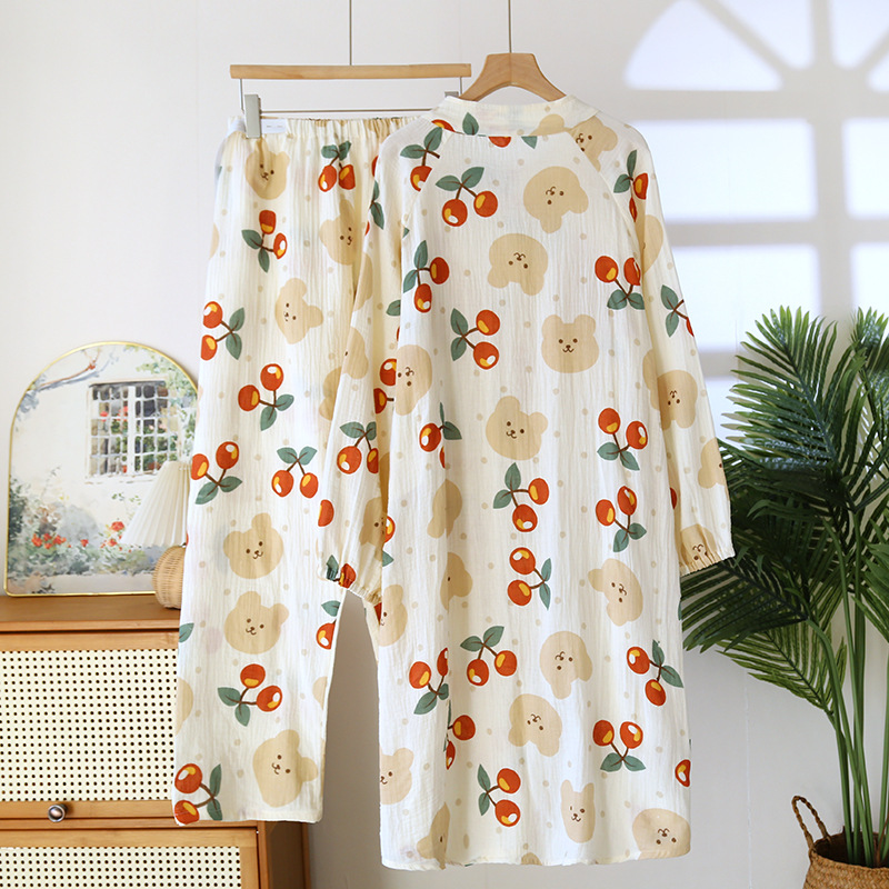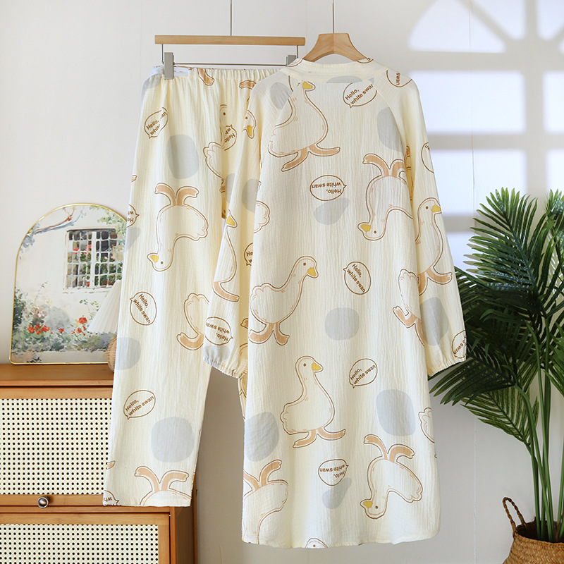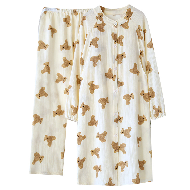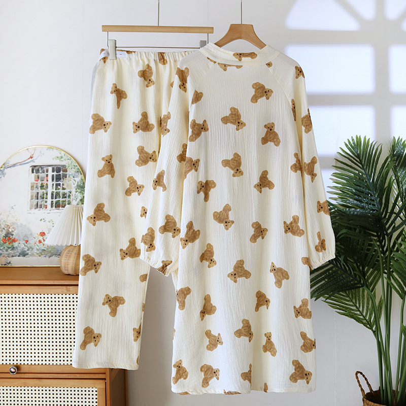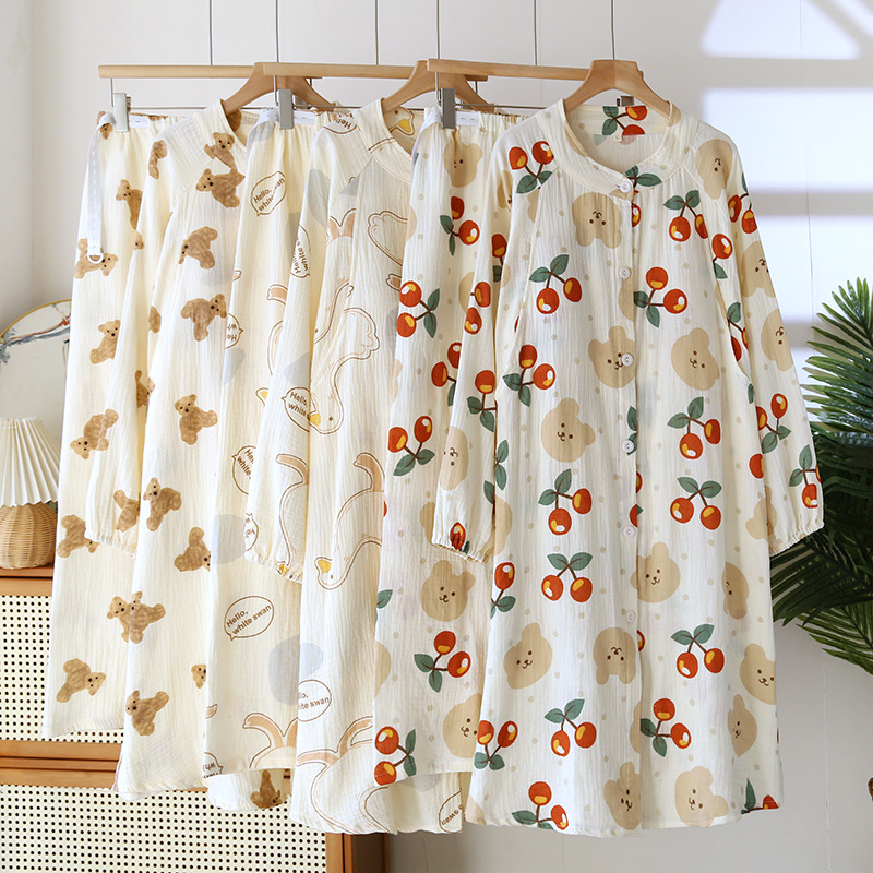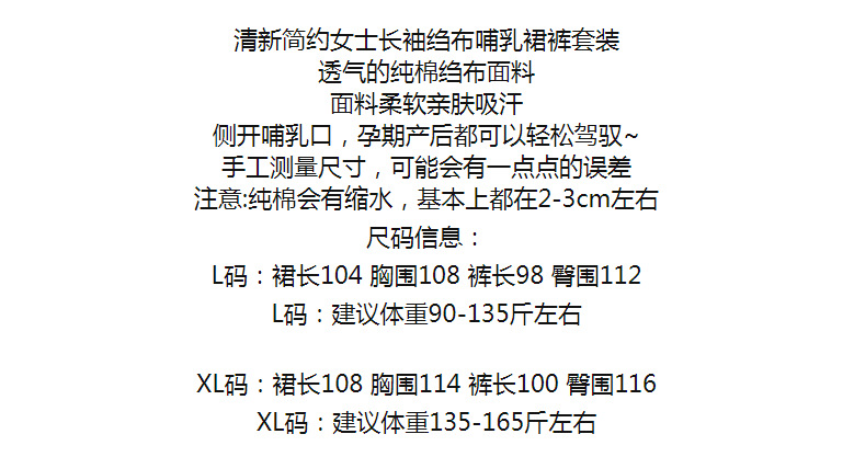 순면 문 옷 봄 및 가을 얇은 가슴 패드 여름 임산부 스커트 산후 간호 파자마 홈 의류 세트