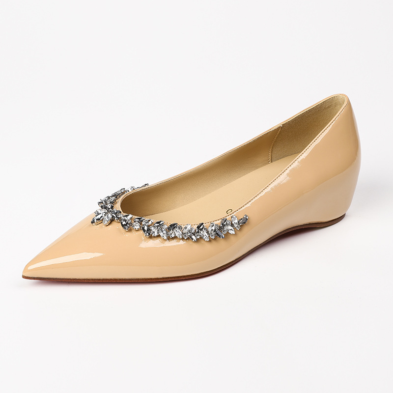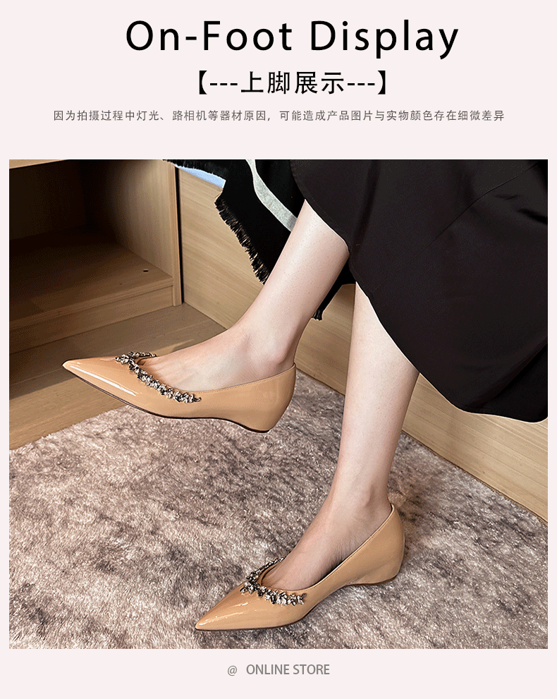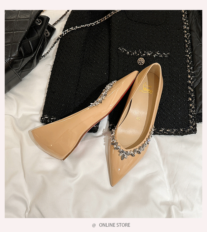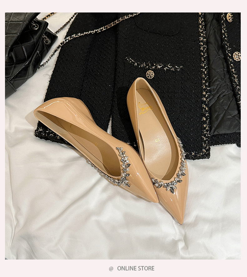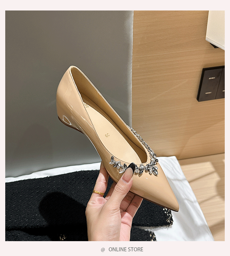 재고 있음 24P1 여성 플랫 슈즈 2026년 신상 누드 컬러 패셔너블하고 다용도로 활용 가능한 뾰족코 워터 다이아몬드 장식으로 발이 피곤하지 않은 우아한 싱글 슈즈