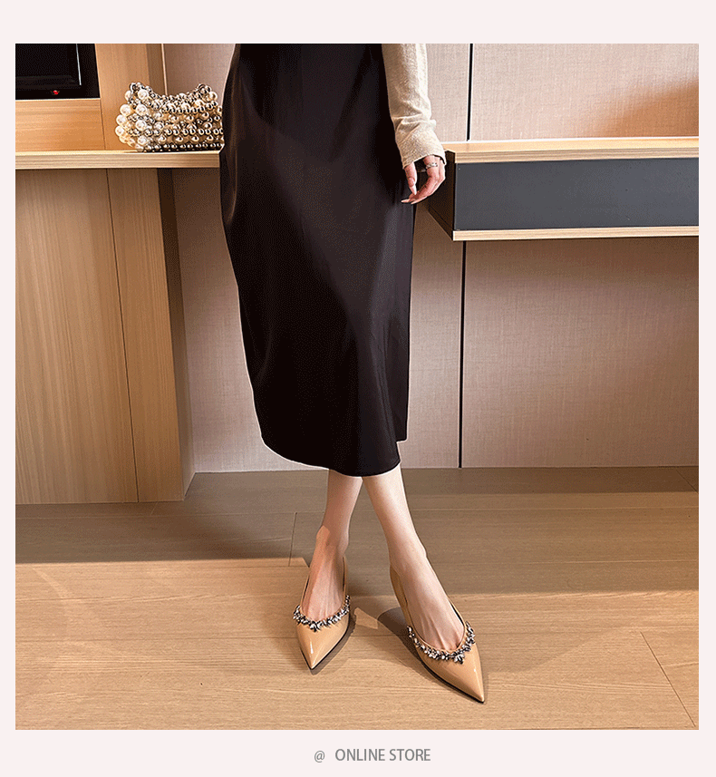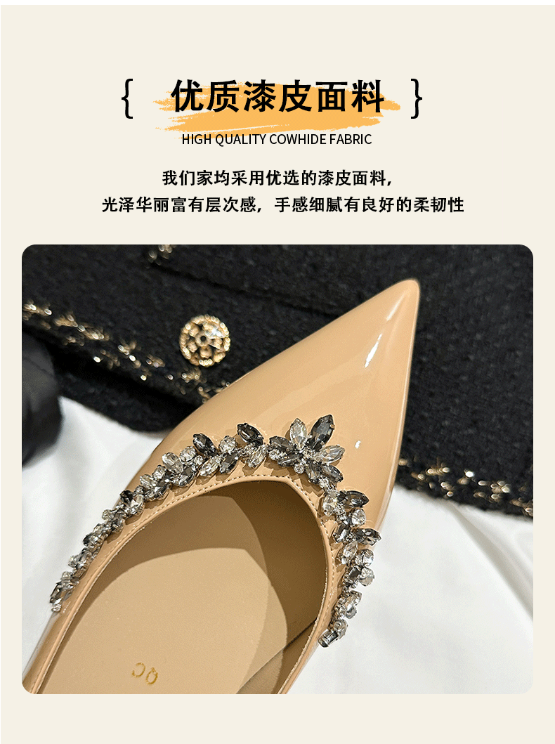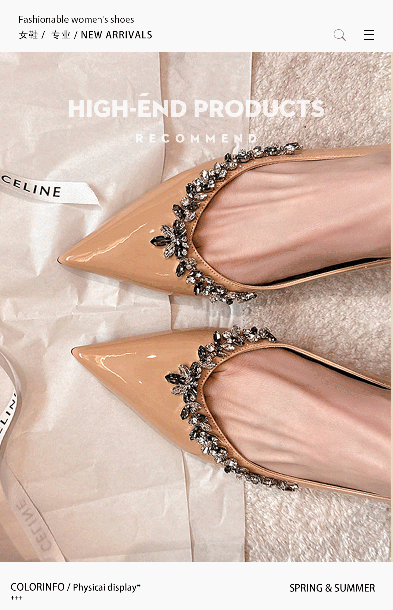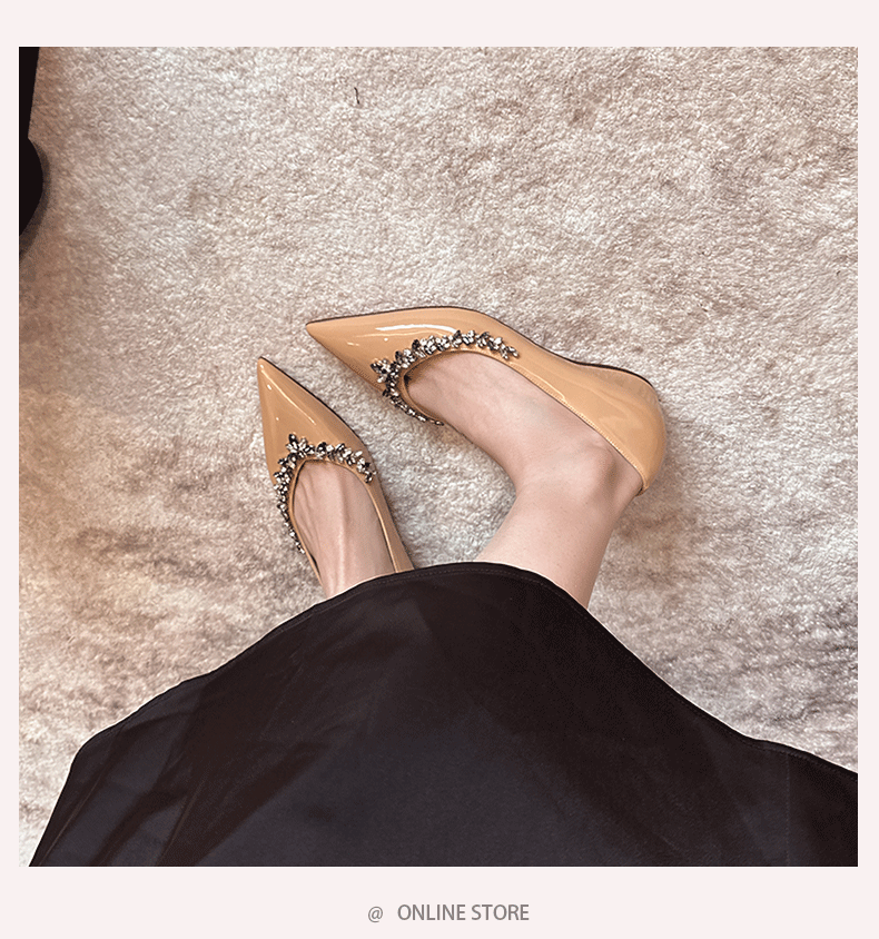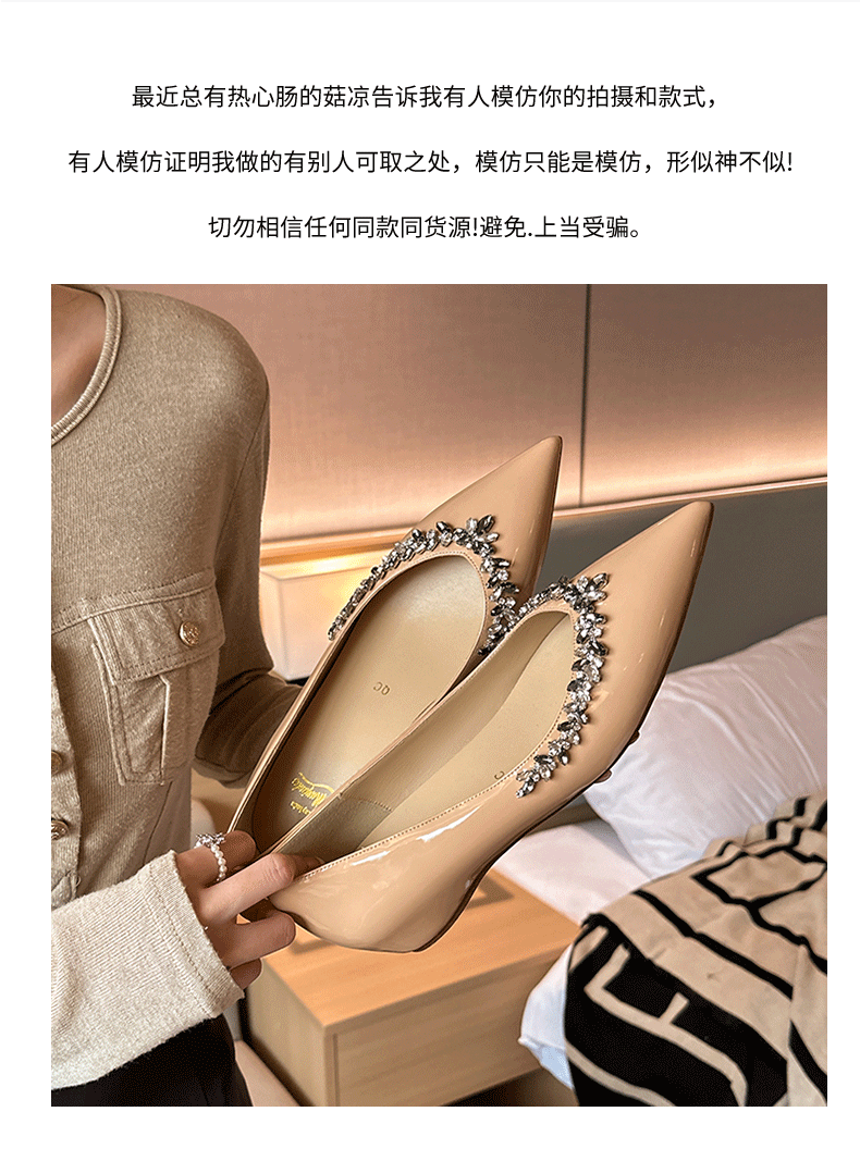재고 있음 24P1 여성 플랫 슈즈 2026년 신상 누드 컬러 패셔너블하고 다용도로 활용 가능한 뾰족코 워터 다이아몬드 장식으로 발이 피곤하지 않은 우아한 싱글 슈즈