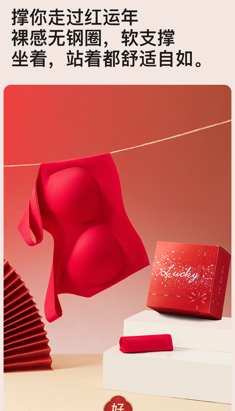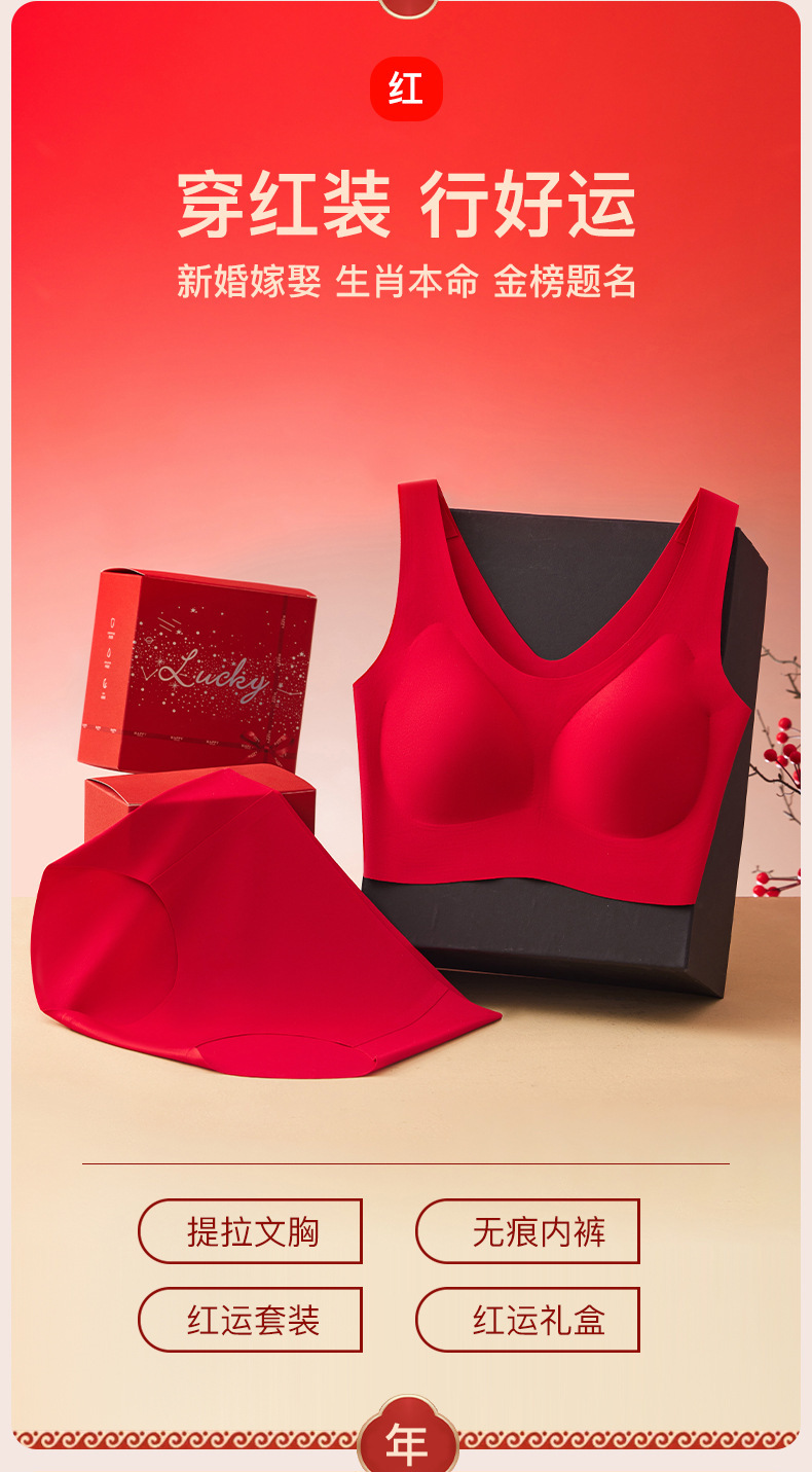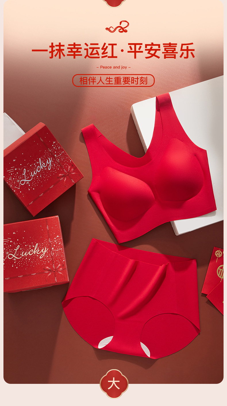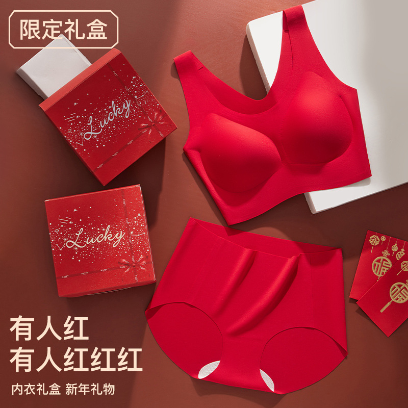 결혼과 행운의 올해 큰 빨간 속옷 고정 컵 아름다운 다시 원활한 브래지어 브리프 선물 상자 세트 여성