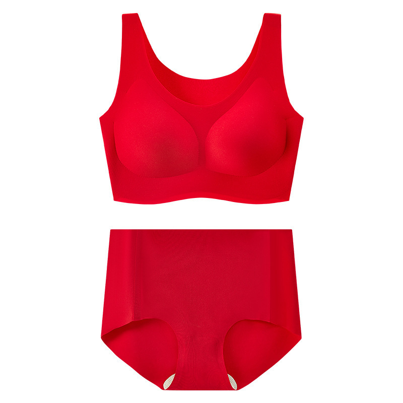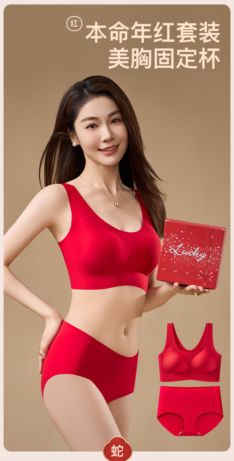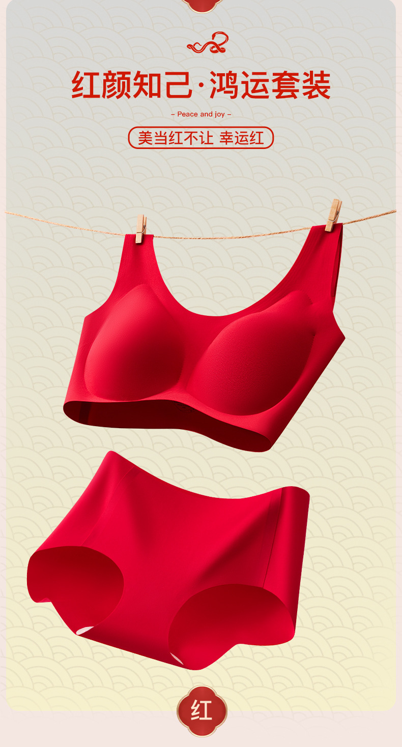 결혼과 행운의 올해 큰 빨간 속옷 고정 컵 아름다운 다시 원활한 브래지어 브리프 선물 상자 세트 여성