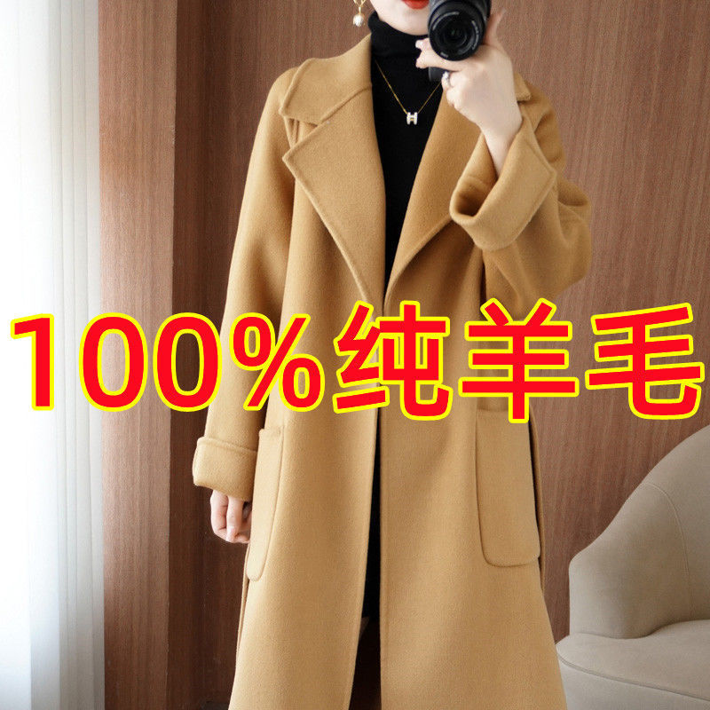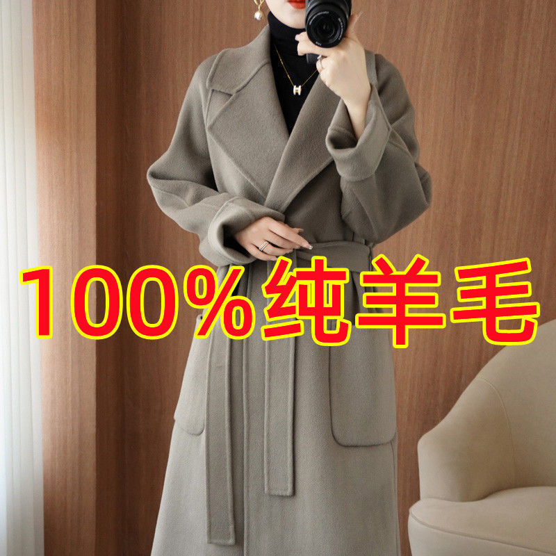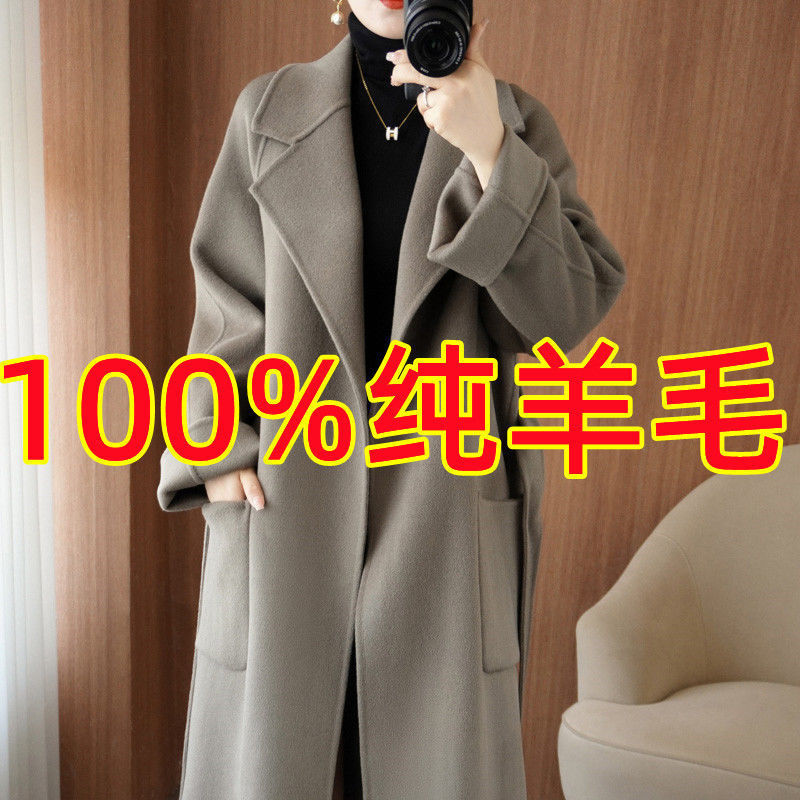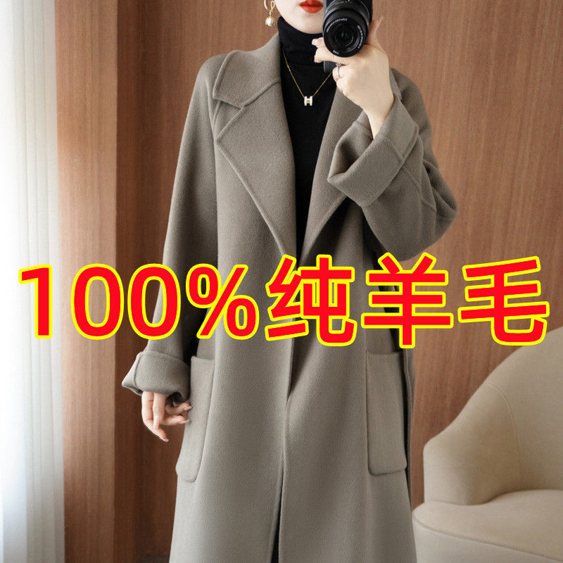 10 순수 양모 양면 트위드 코트 여성용 긴 무릎 반 시즌 하이 엔드 슬림 세트 울 코트