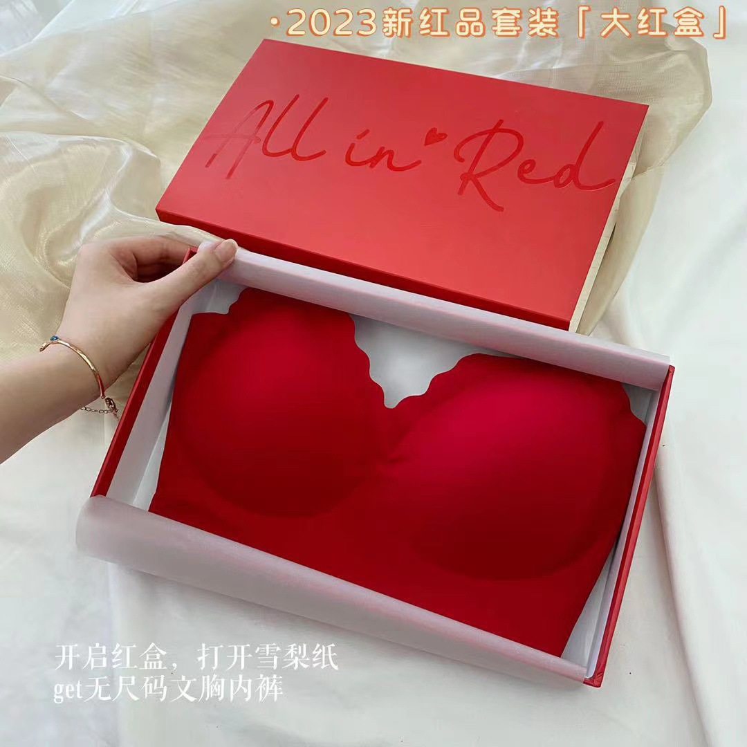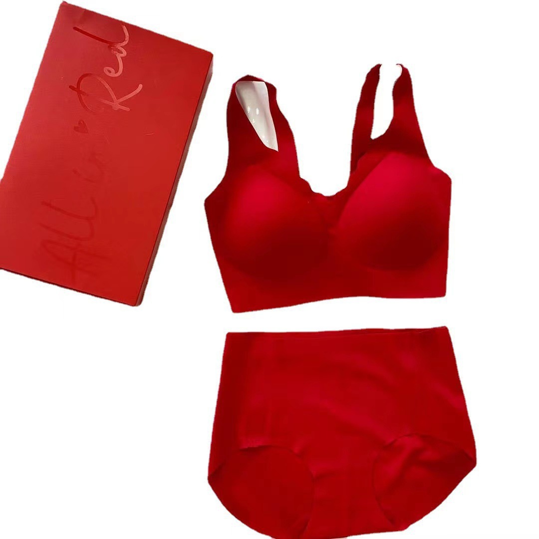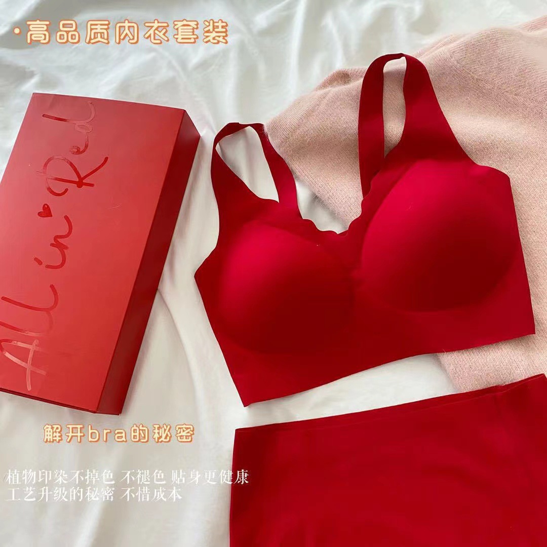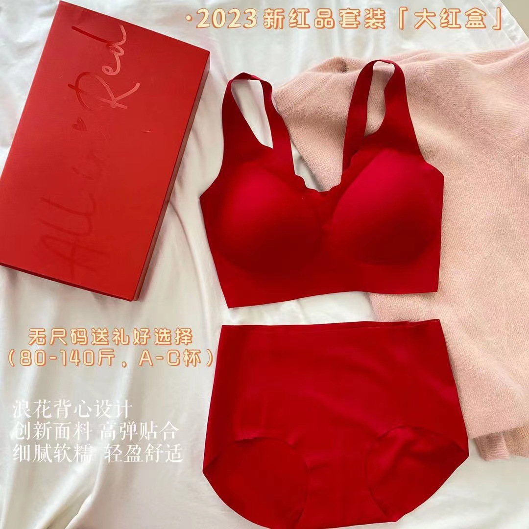 Ouyang Nana의 세트 편안한 스포츠를위한 같은 스타일의 레드 박스 속옷 여성을위한 무 사이즈 브라 속옷