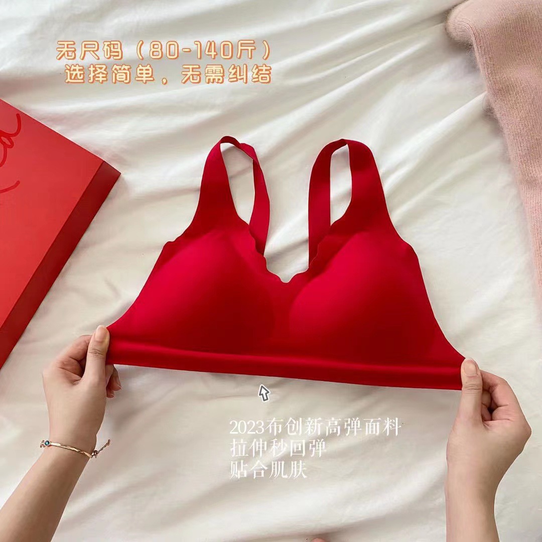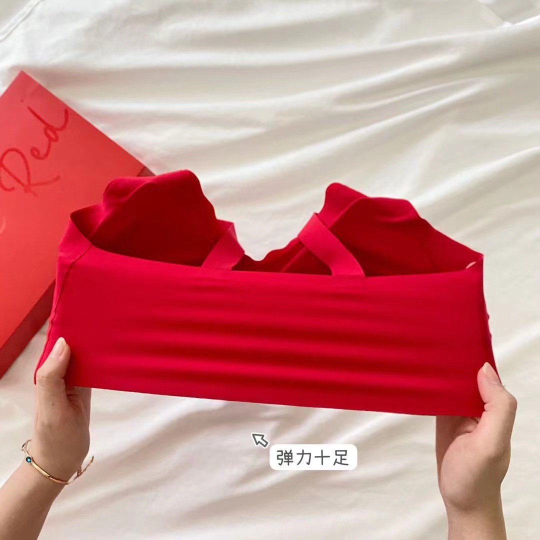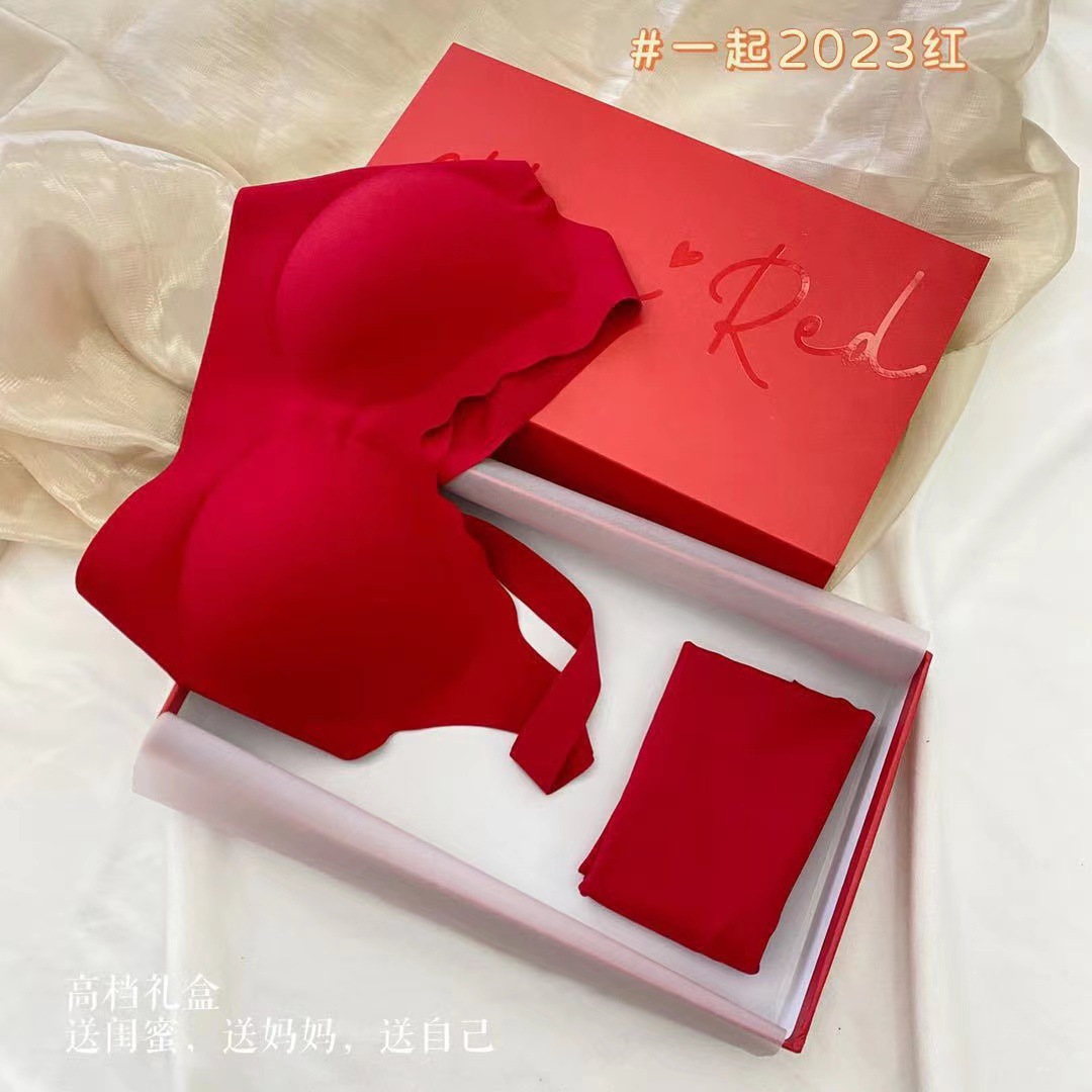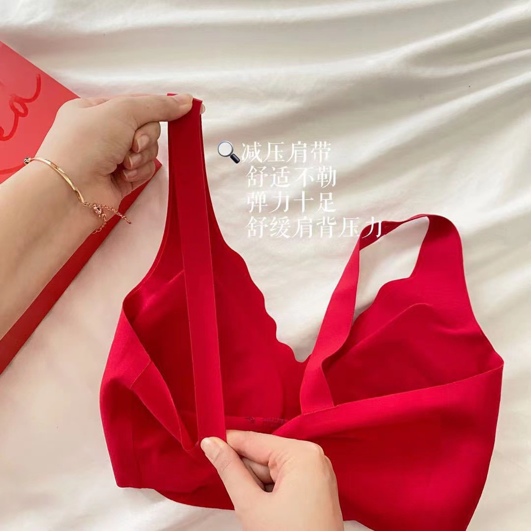 Ouyang Nana의 세트 편안한 스포츠를위한 같은 스타일의 레드 박스 속옷 여성을위한 무 사이즈 브라 속옷