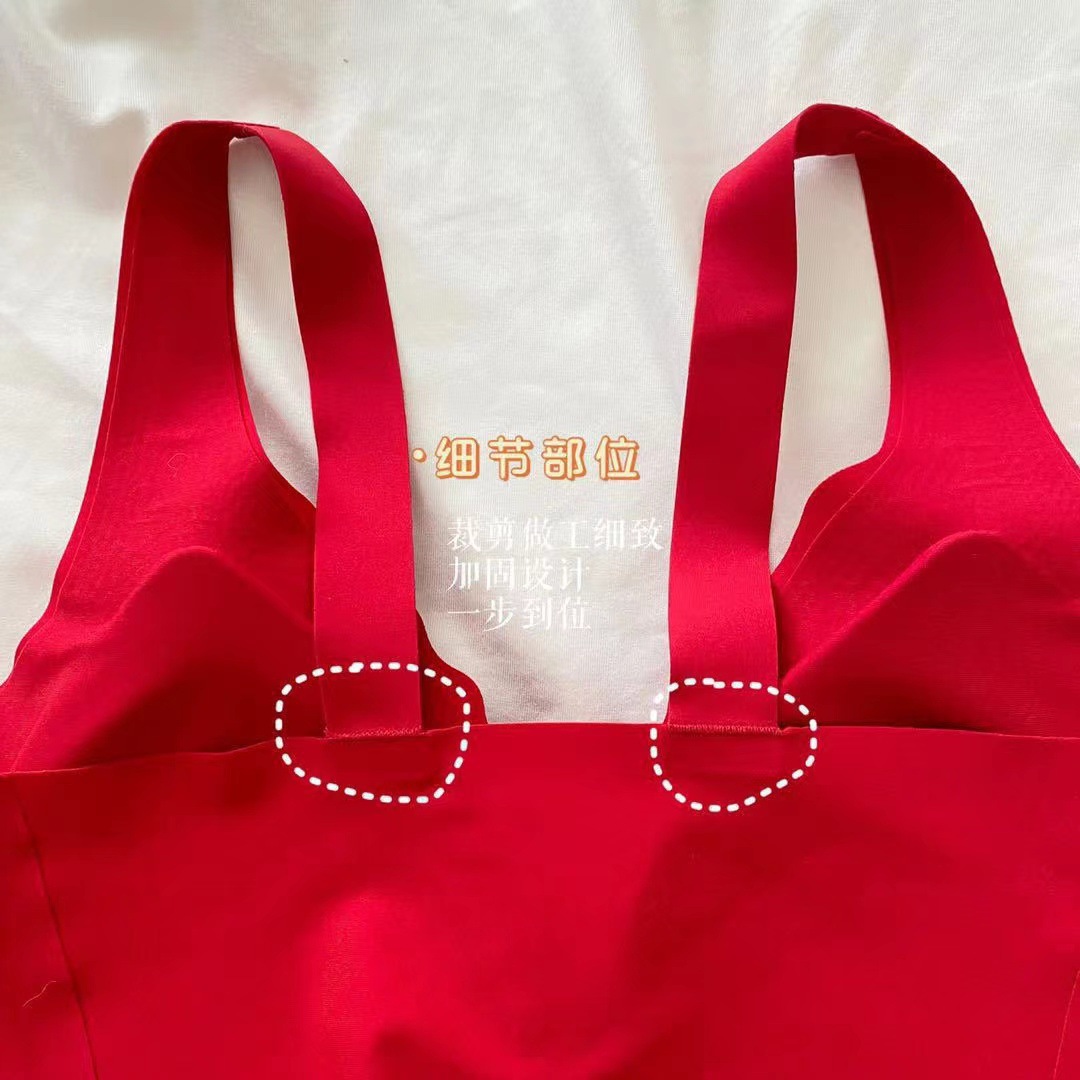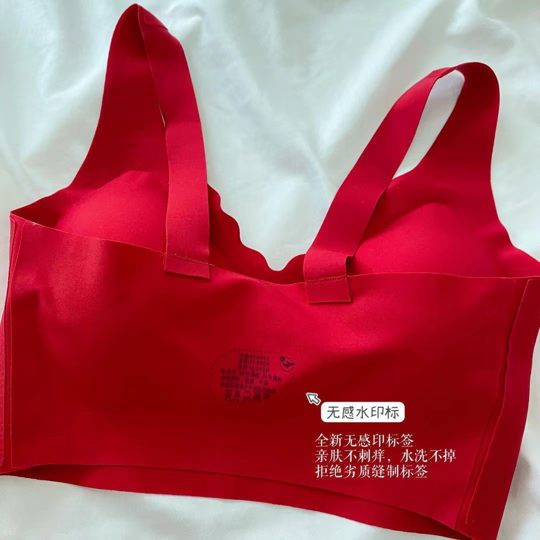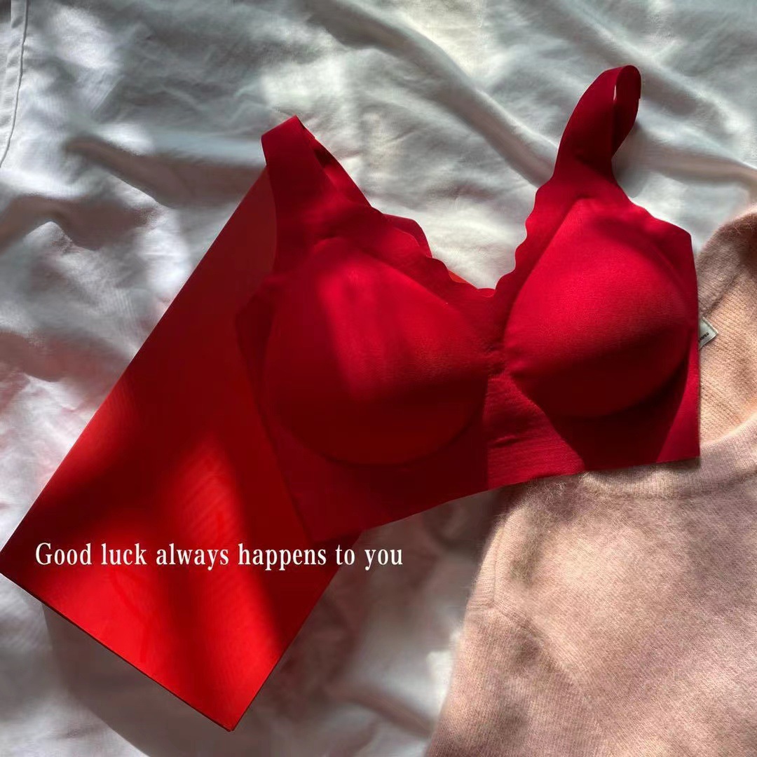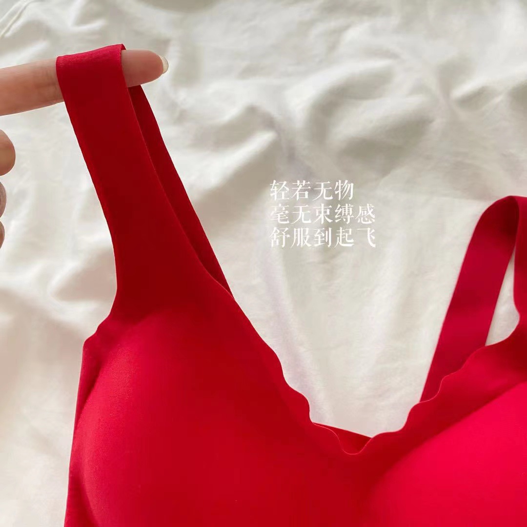 Ouyang Nana의 세트 편안한 스포츠를위한 같은 스타일의 레드 박스 속옷 여성을위한 무 사이즈 브라 속옷