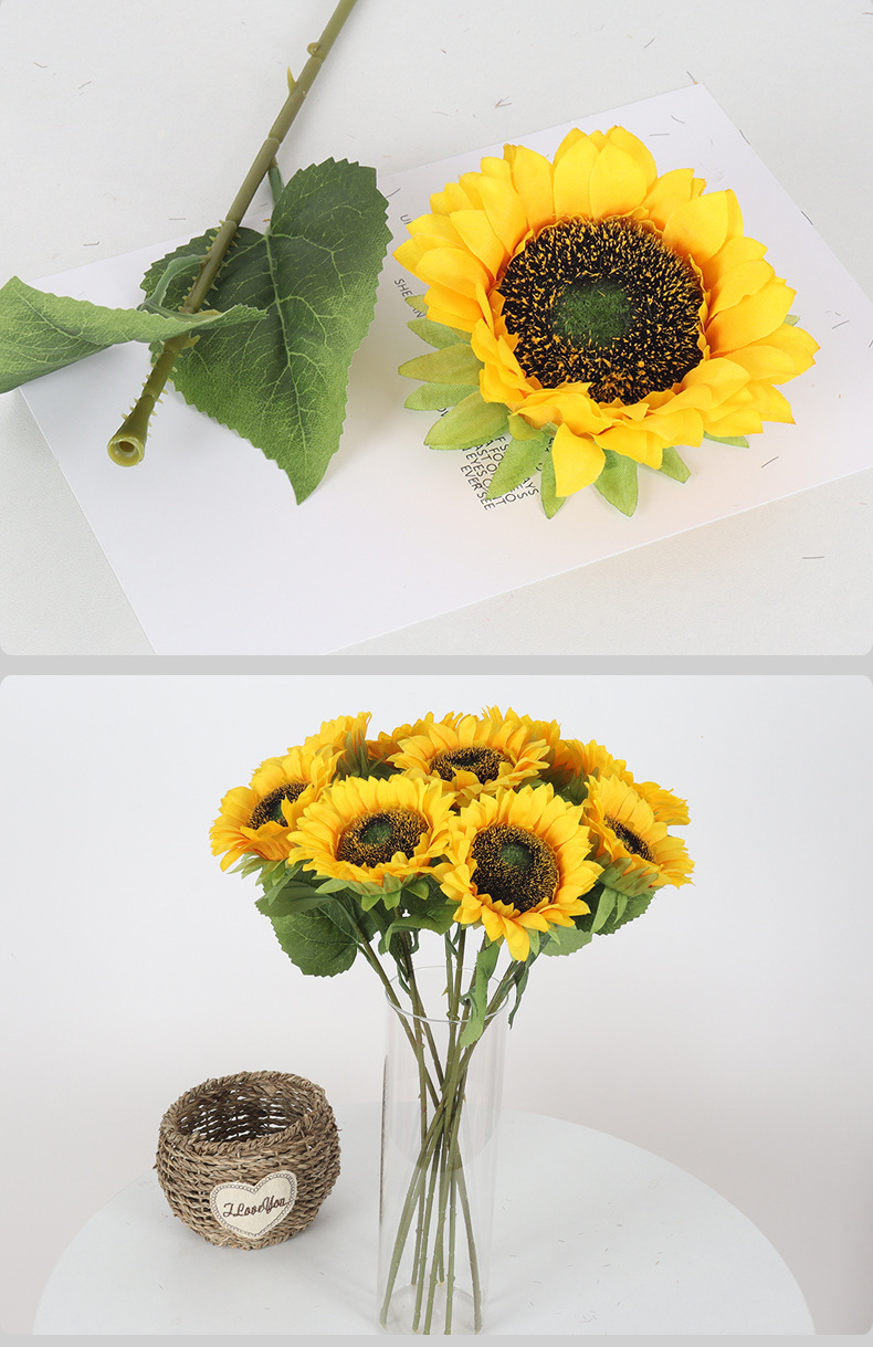 해바라기 인공 꽃 단일 해바라기 홈 거실 사무실 장식 장식 가짜 꽃 사진 소품