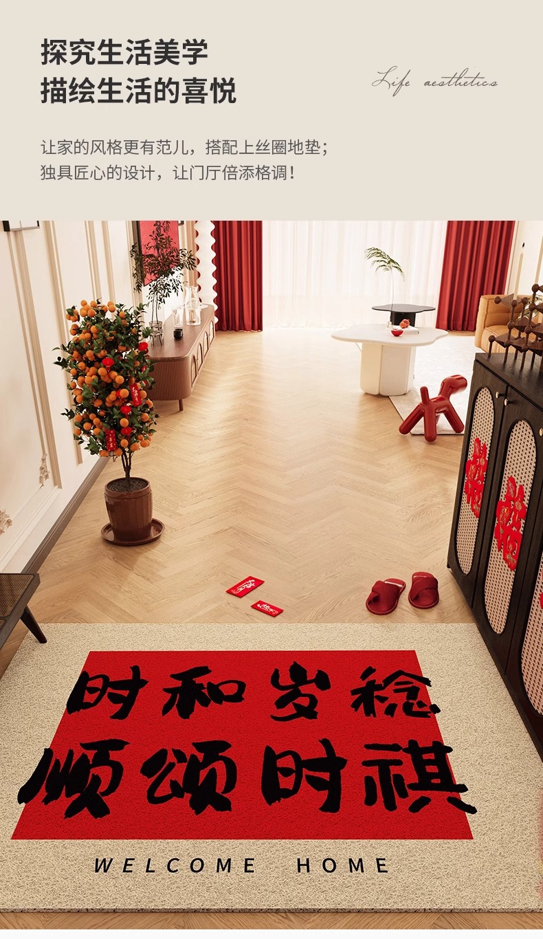 현관문 바닥매트, 현관문 바닥매트, 빨간색 현관문 매트, 진흙과 흙을 긁어내는 매트, 뱀의 해 매트