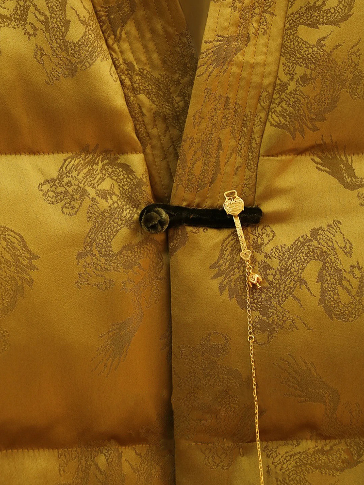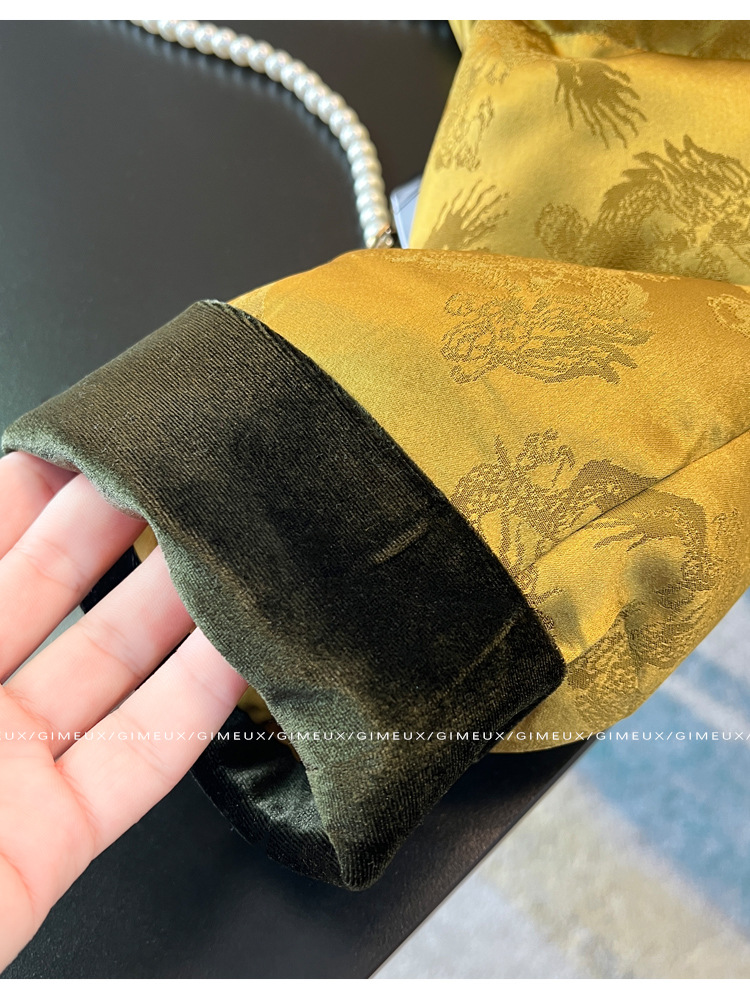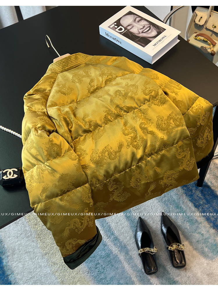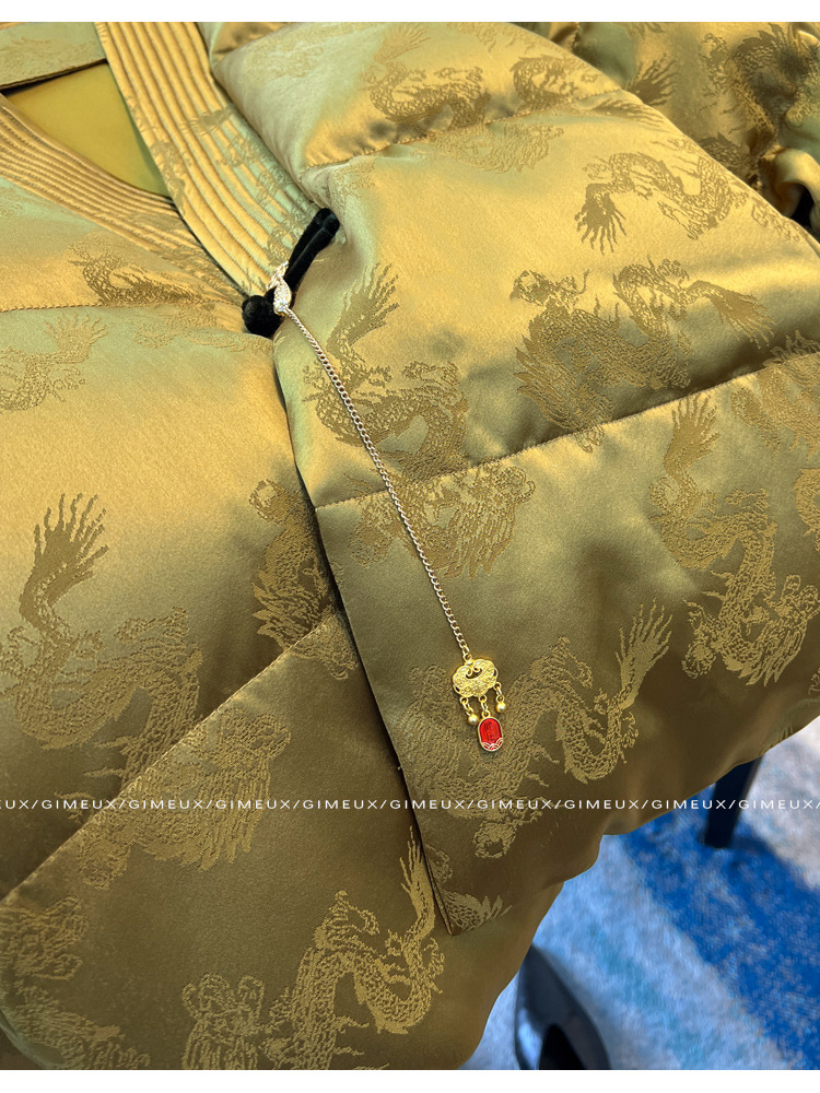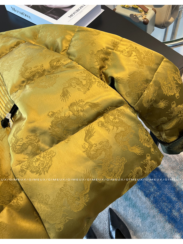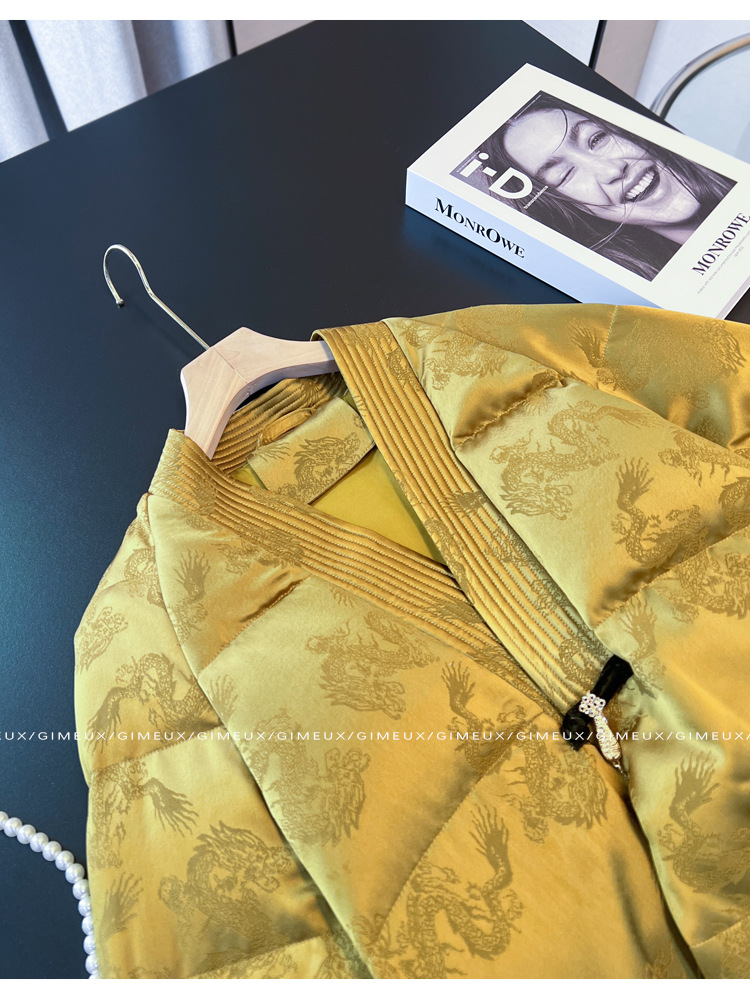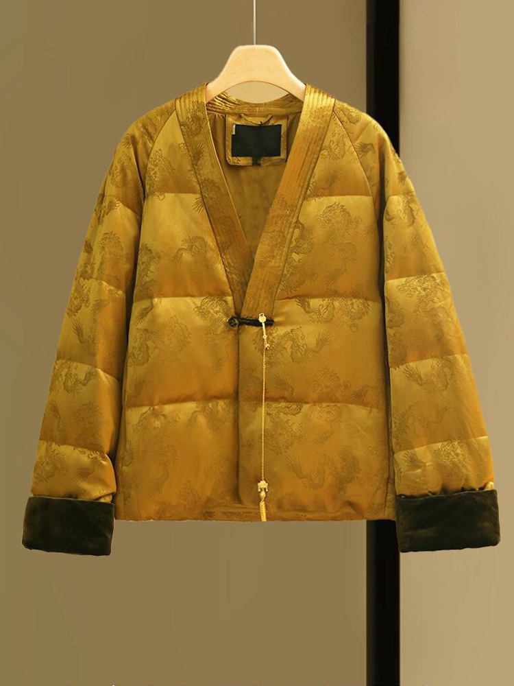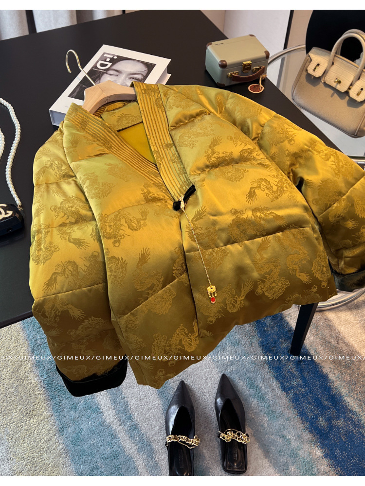 새로운 중국 스타일 국가 스타일 다운 재킷 여성을위한 버클 2024 겨울 새로운 프랑스 자카드 V-넥 하이 엔드 우아한 짧은 코트