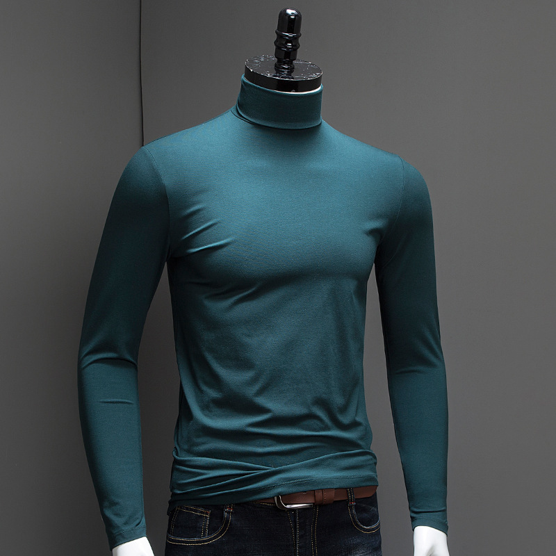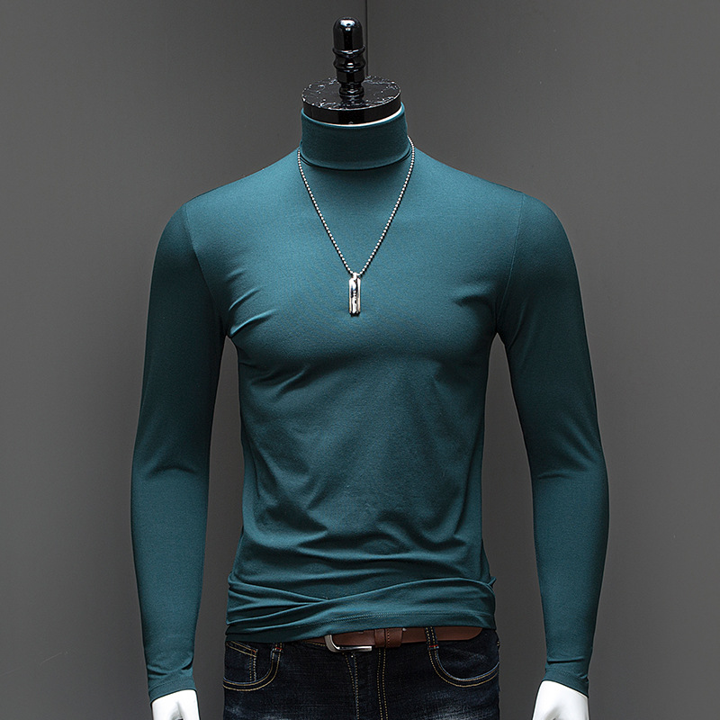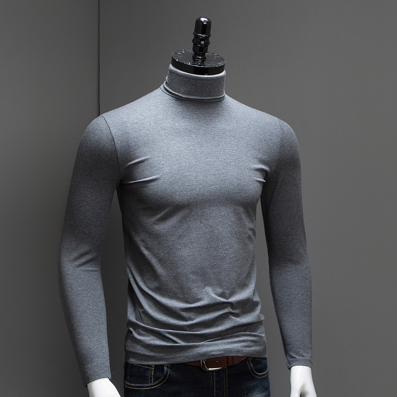 가을 겨울 남성용 단색 하이넥 긴팔 이너웨어 일반 수출용 슬림핏 트렌디 단색 티셔츠 상의