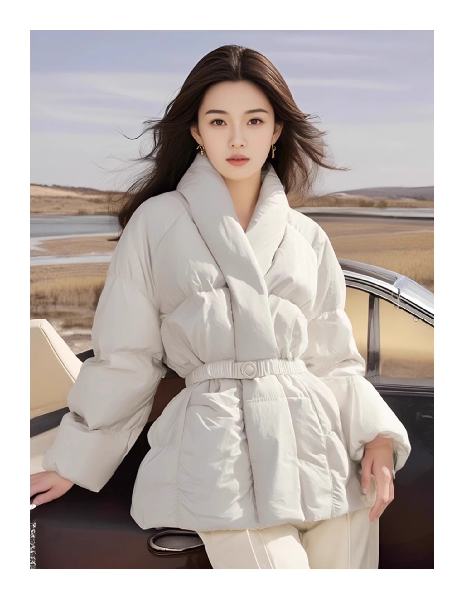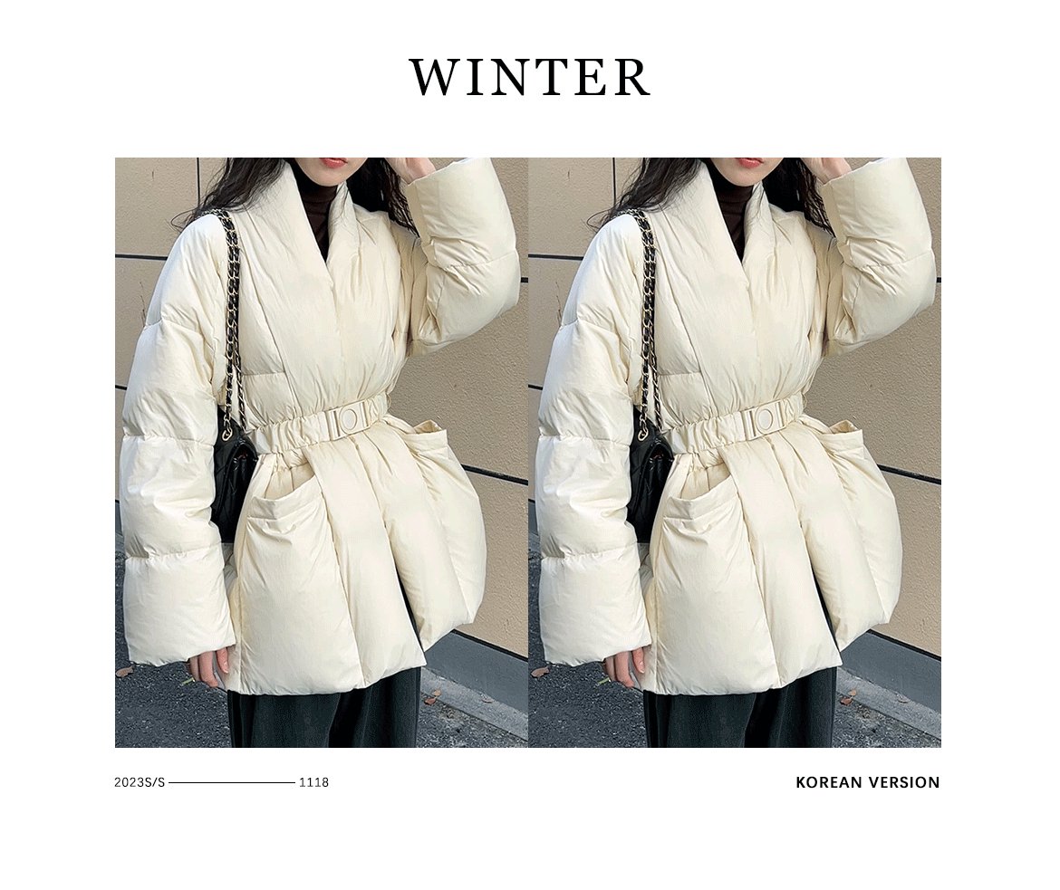 틈새 허리 여성 다운 재킷 겨울 새로운 한국식 슬림-신형 중국식 화이트 덕 다운 따뜻한 빵 자켓