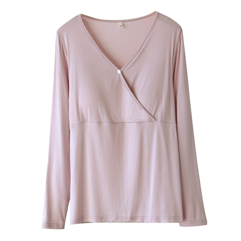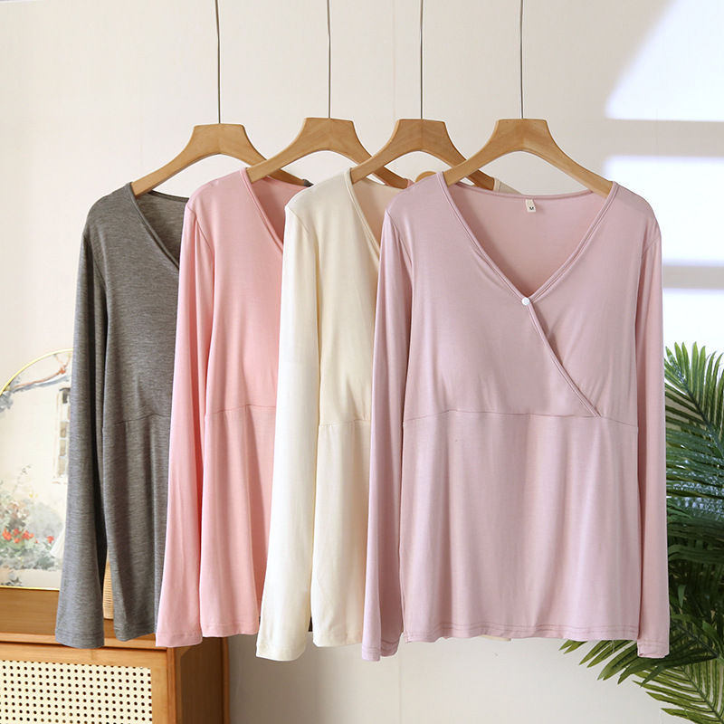 모유 수유 최고 가슴 패드 봄과 가을 모달 임산부를위한 긴 소매 잠옷 산후 모유 수유 의류 얇은 가정용 탑