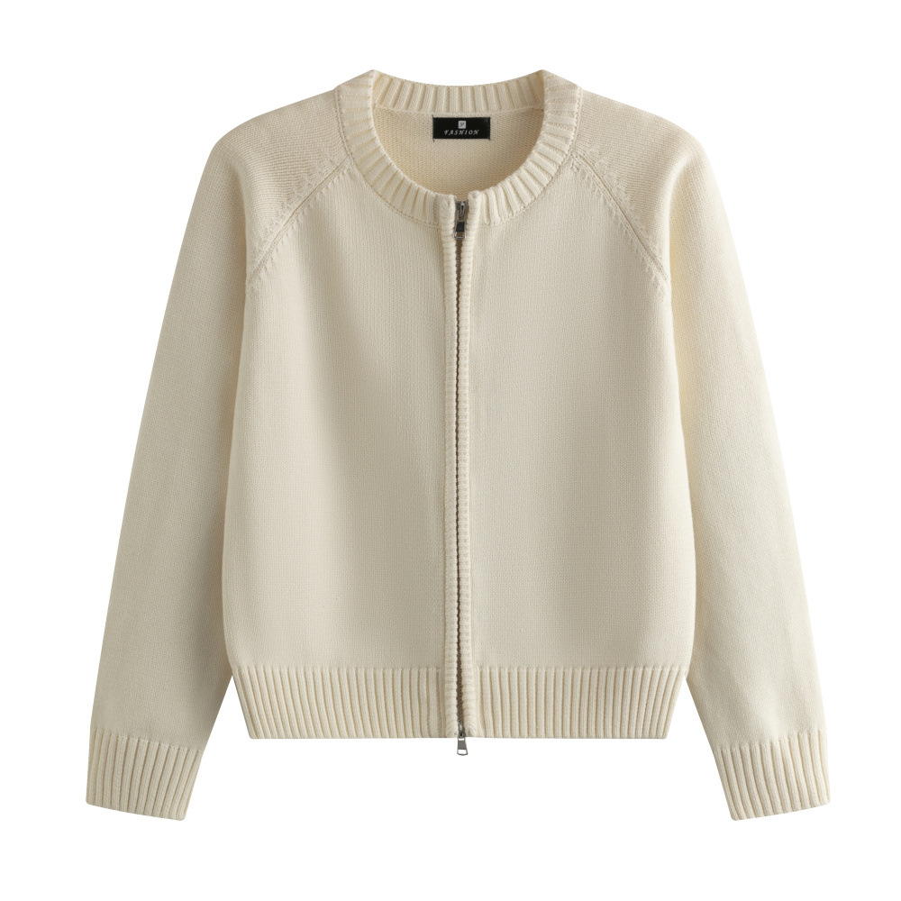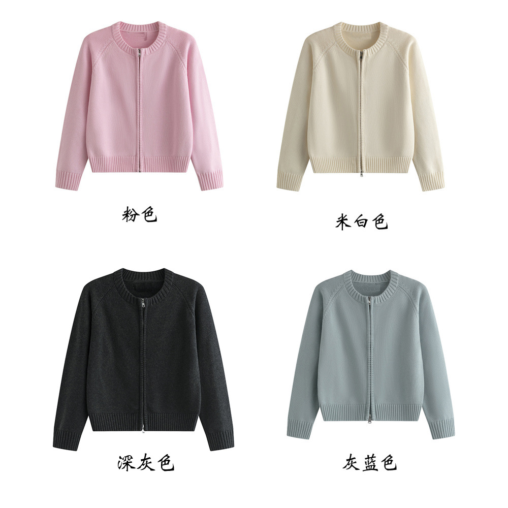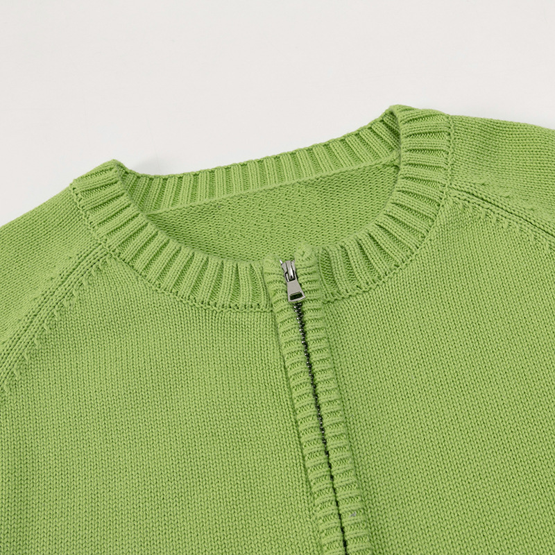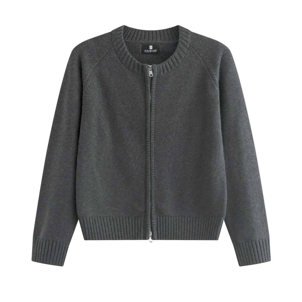 순면 니트 카디건 여성용 두꺼운 스웨터 모든면 지퍼 스웨터 코튼 슬림 핏 코트 짧은 디자인 감각