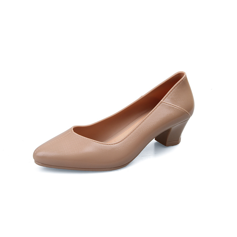 패션 하이힐 여성용 비 신발 미끄럼 방지 워터 슈즈 화이트 칼라 비즈니스 레인 부츠 플라스틱 방수 캐주얼 패션 여성 신발 단색