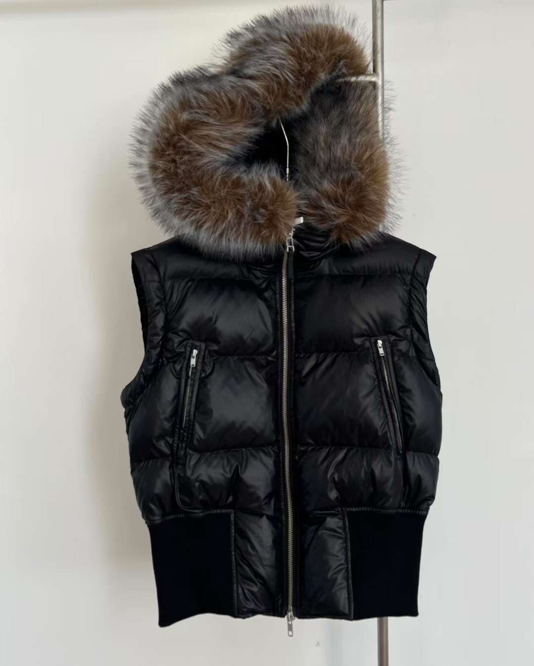 겨울 새로운 분리형 모피 칼라 다운 재킷 허리 슬리밍 90 화이트 오리 다운 재킷 여성 블랙
