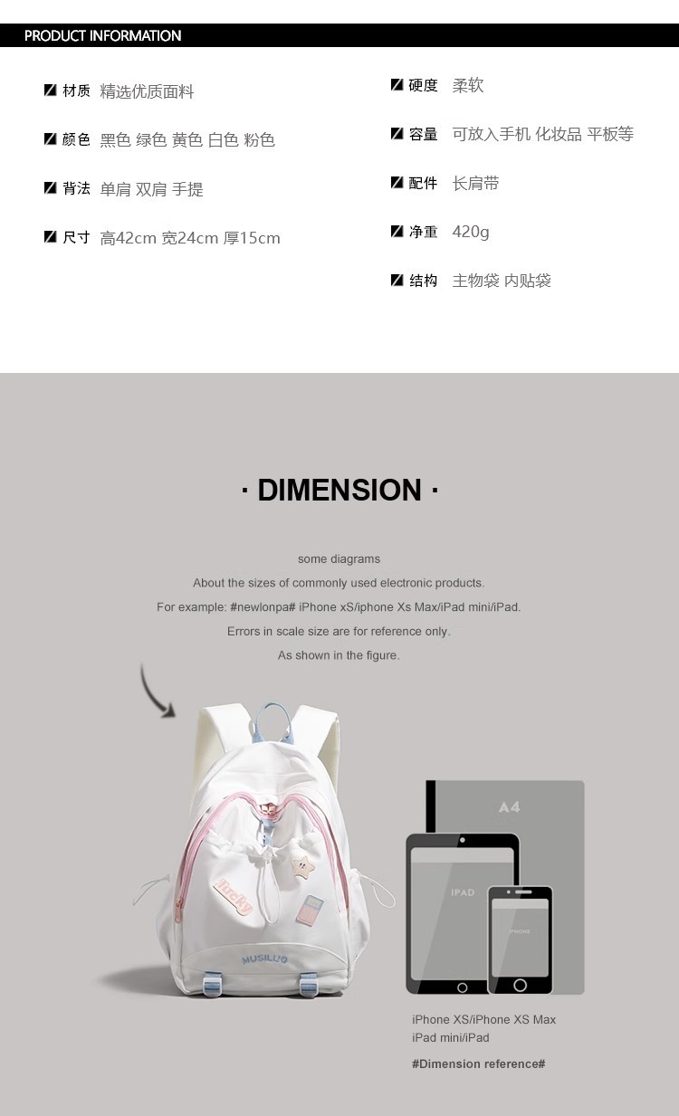 일본 중학교 고등학교 배낭 대학생 여성을위한 간단한 경량 야외 여행 배낭
