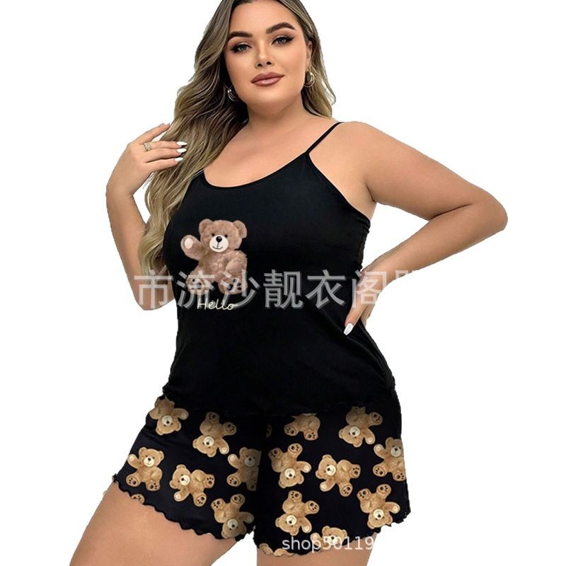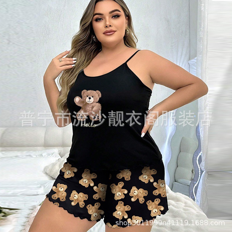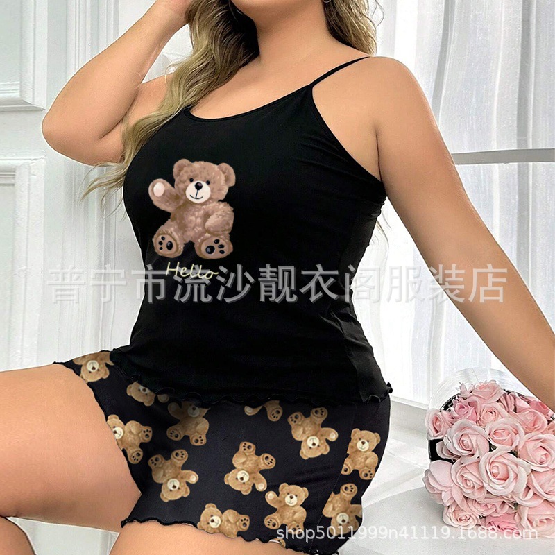 국경 간 TEMU 뜨거운 판매 뜨거운 뜨거운 뜨거운 슬링 여성의 편안한 홈 캐주얼 홈 의류 섹시한 외부 착용 인쇄 세트