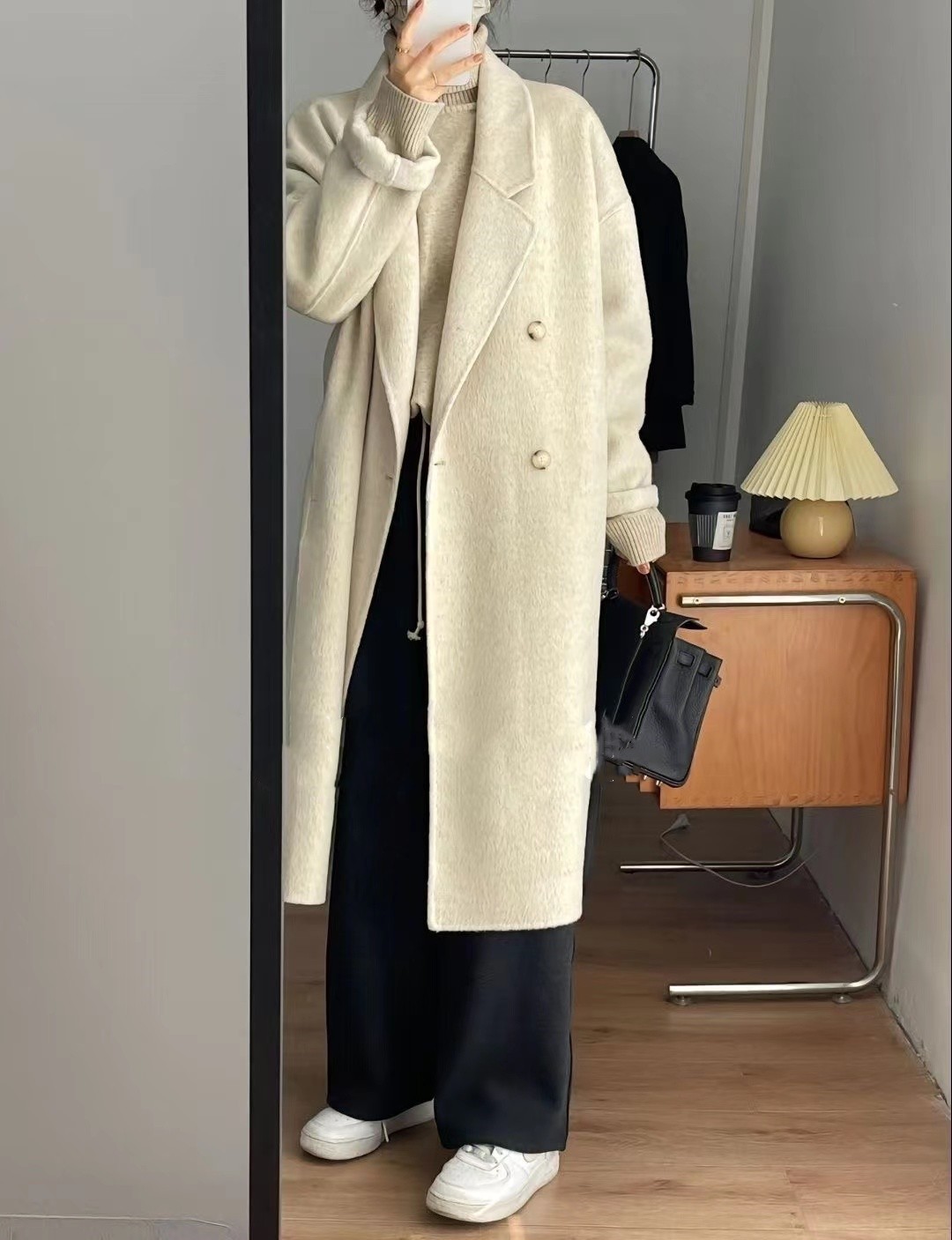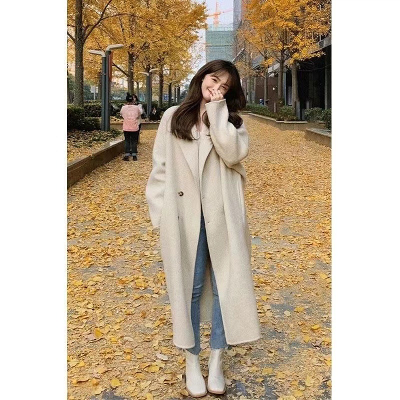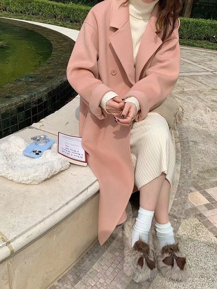 2025 비수기 특가 대폭 할인 인기 한국 스타일 여성 양면 울 코트 중간 길이 슬림핏 양면 울 코트
