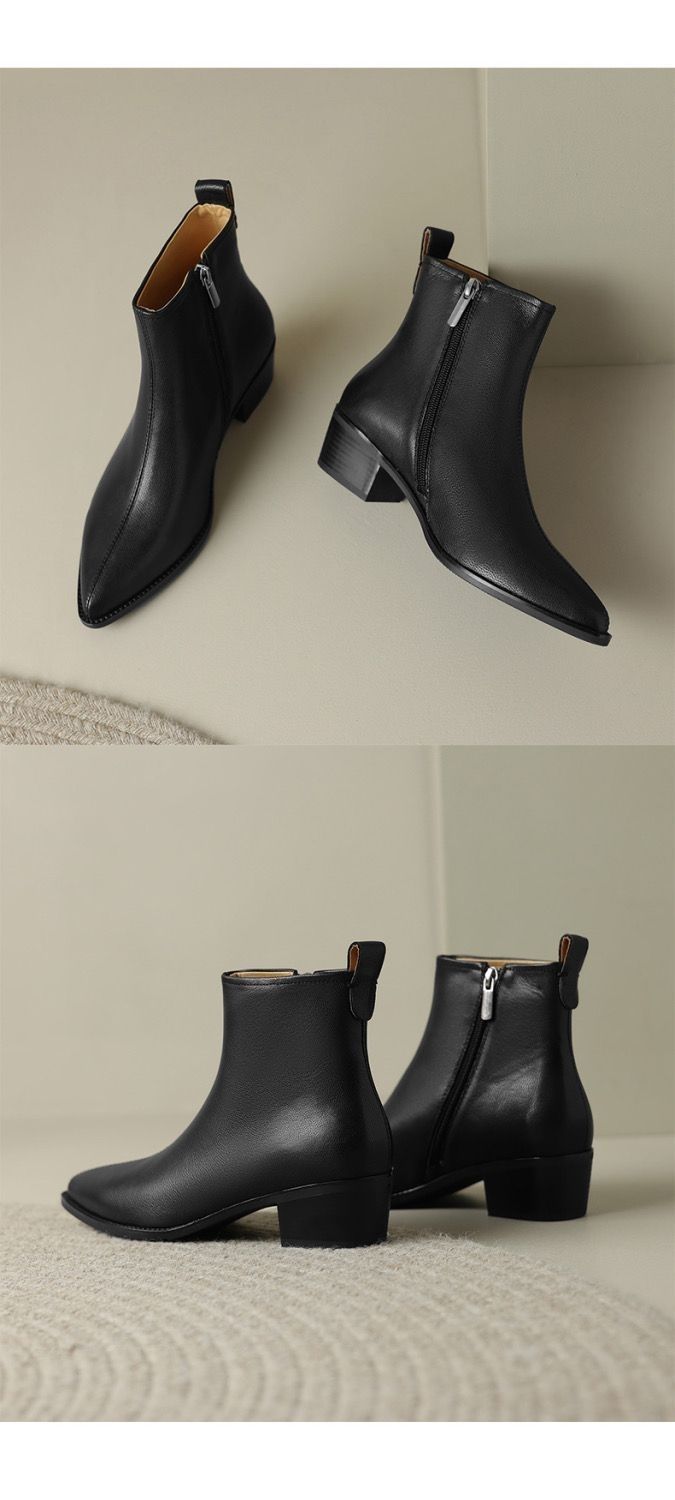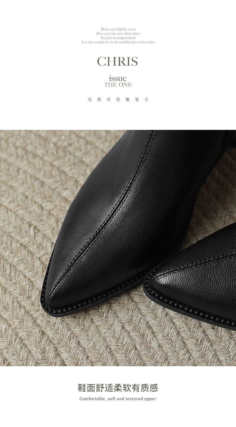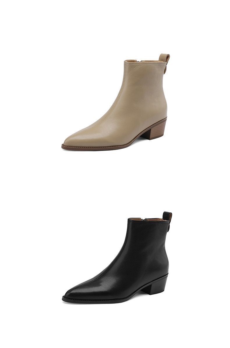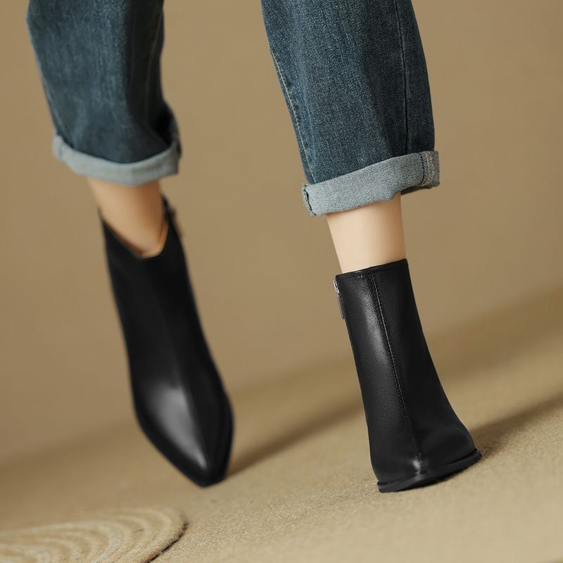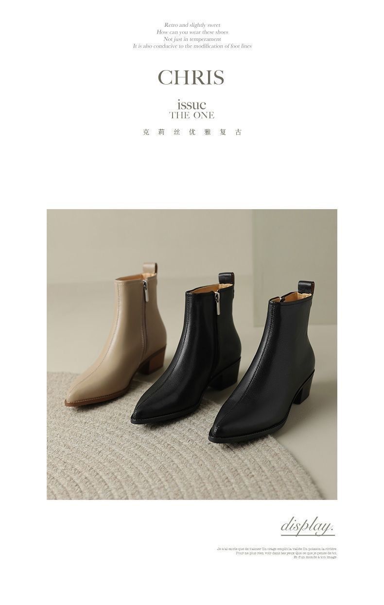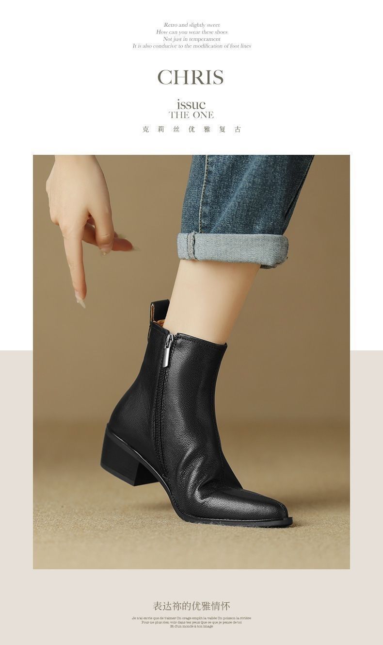 프렌치 스타일 부드러운 가죽 가을 겨울 여성용 뾰족코 숏부츠, 살구색 미들힐, 슬림하고 패셔너블하며 다재다능한 마틴부츠, 굵은 굽과 안감이 있는 앵클부츠