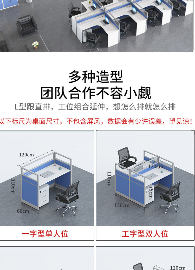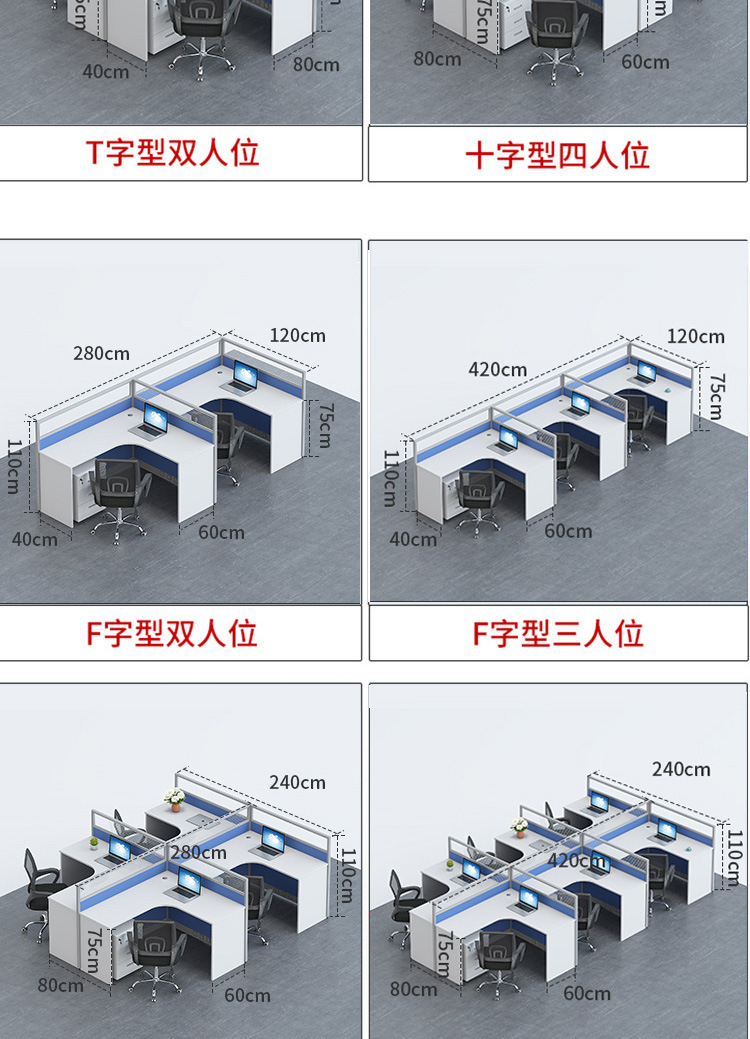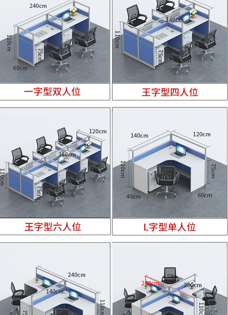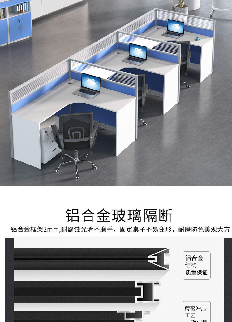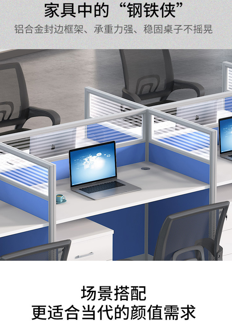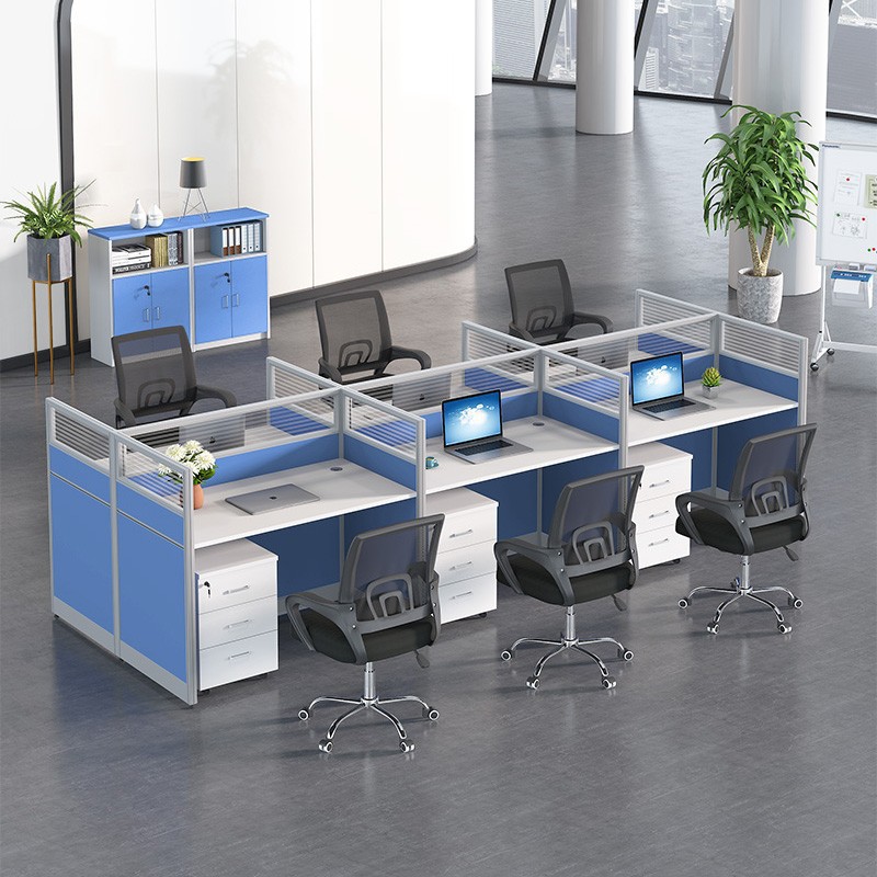 직원 사무실 책상 및 의자 조합 간단한 현대 블루 2/4/6 인 스크린 스테이션 직원 카드 컴퓨터 책상