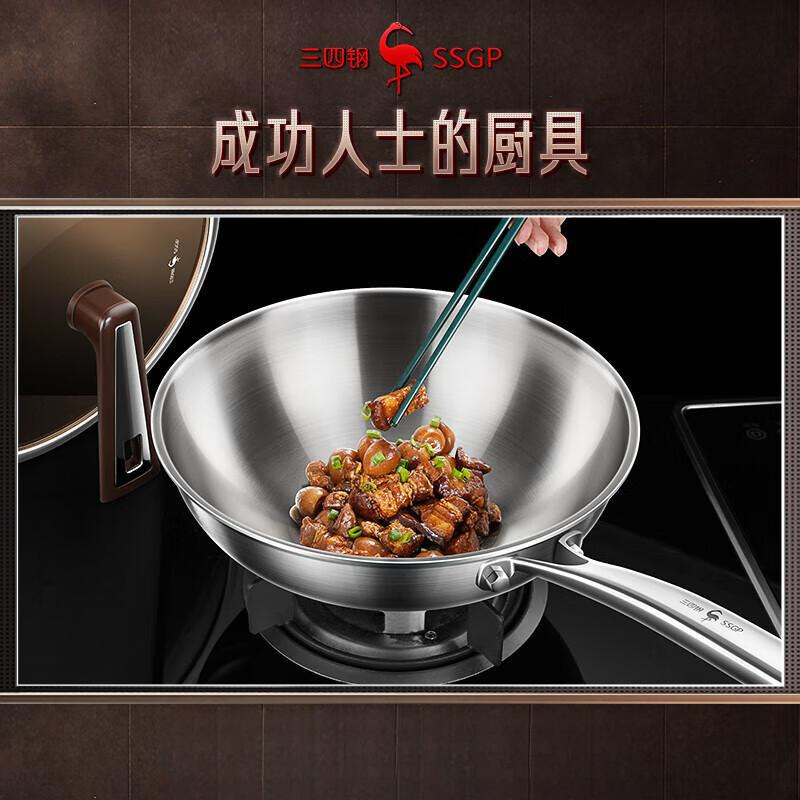 3 개의 4 개의 강철 식품 등급 316L 스테인레스 스틸 팬 코팅되지 않은 프라이팬 가정용 유도 밥솥 프라이팬 라운드 바닥 비 스틱 팬