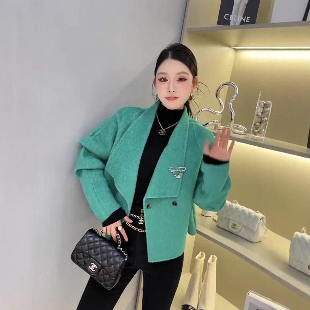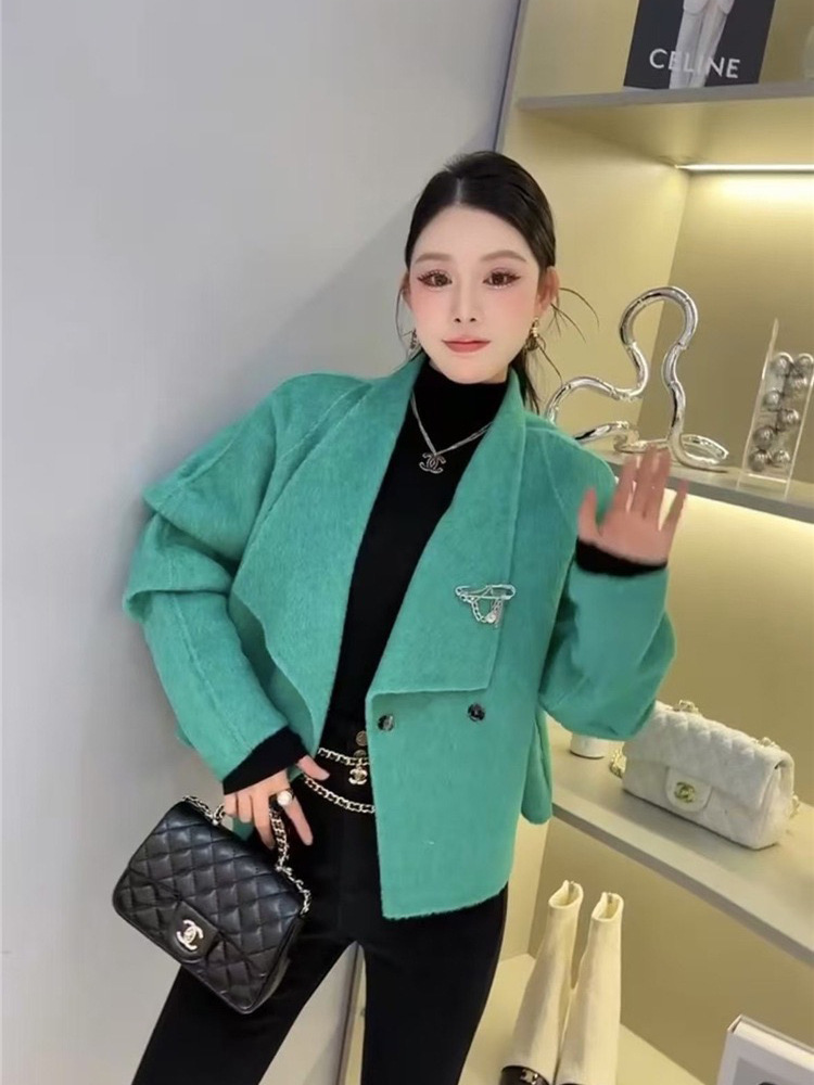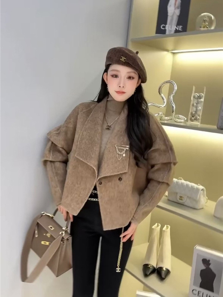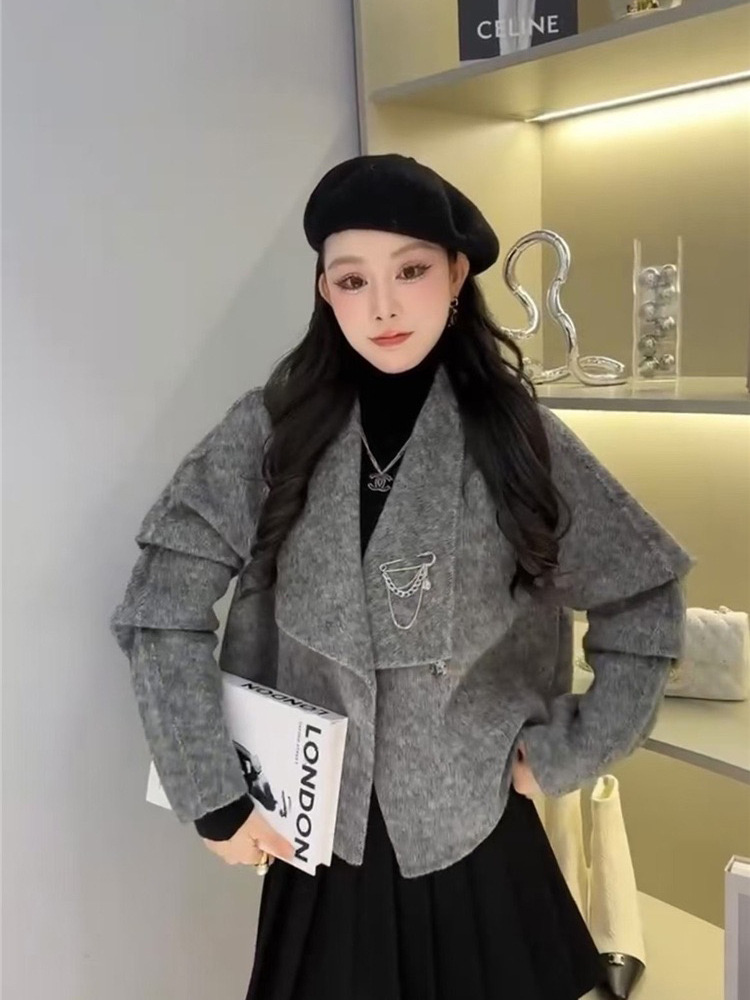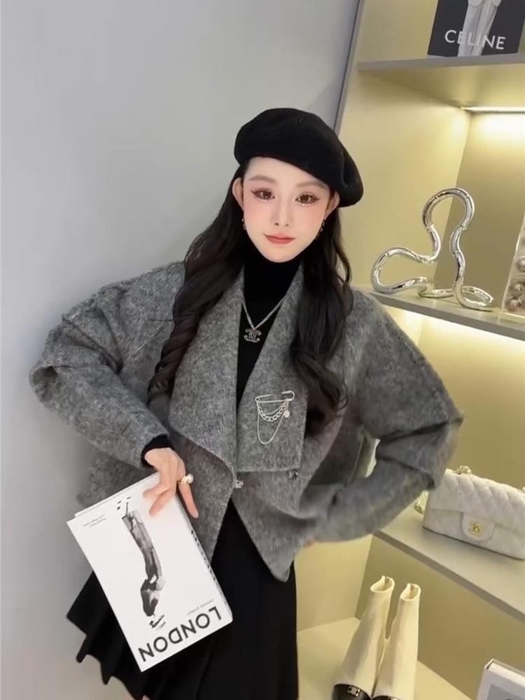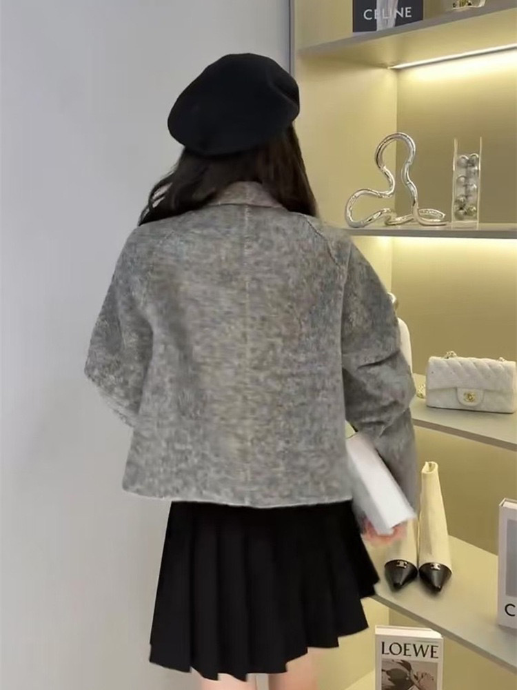 유럽 양면 캐시미어 코트 여자 고급 연령 감소 작은 우아한 숙녀 올 매치 울 코트 쇼트
