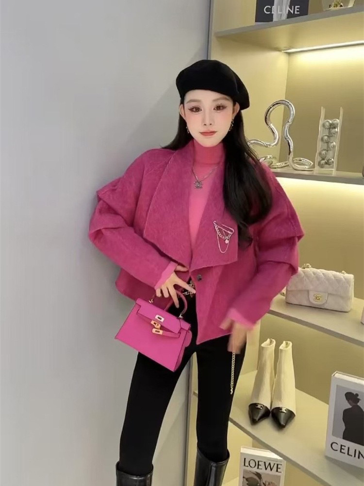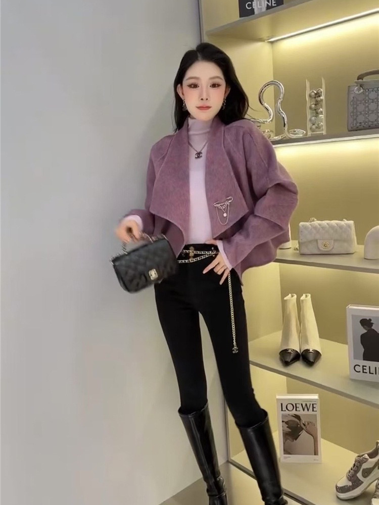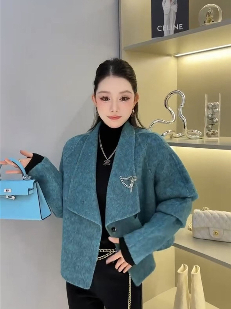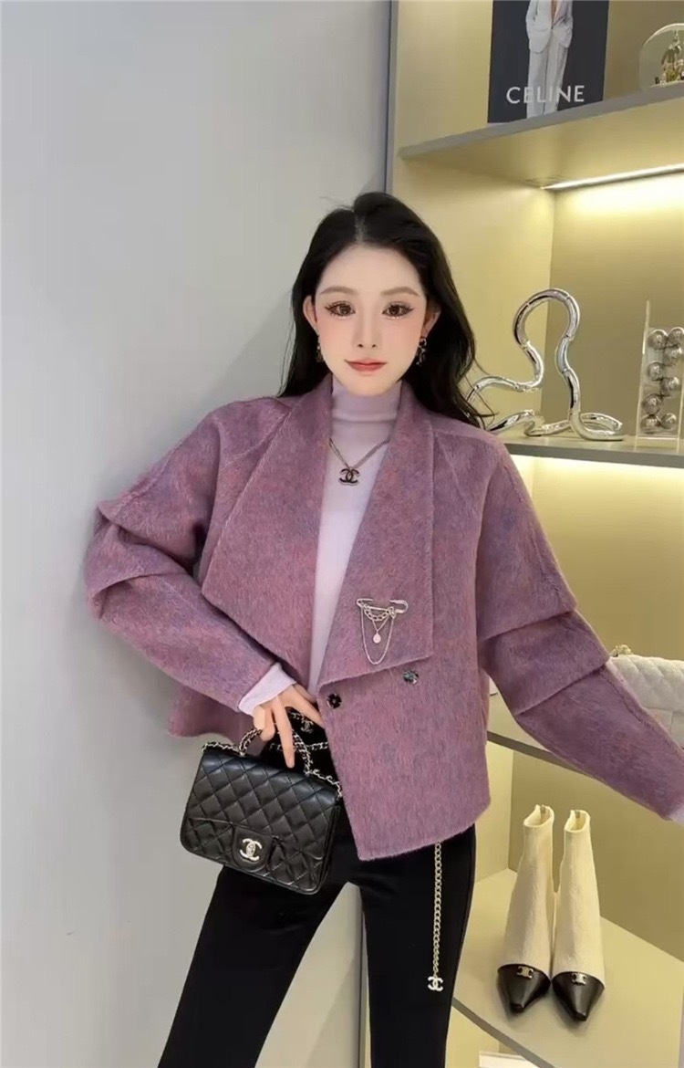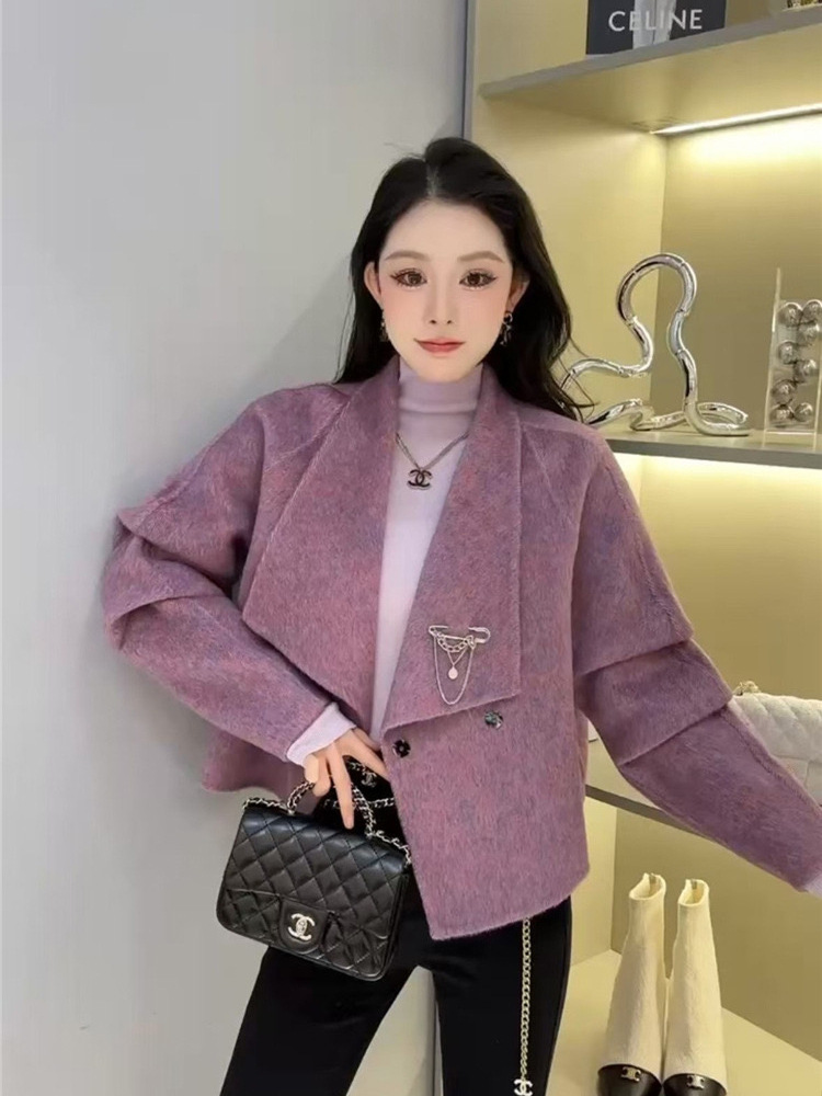 유럽 양면 캐시미어 코트 여자 고급 연령 감소 작은 우아한 숙녀 올 매치 울 코트 쇼트