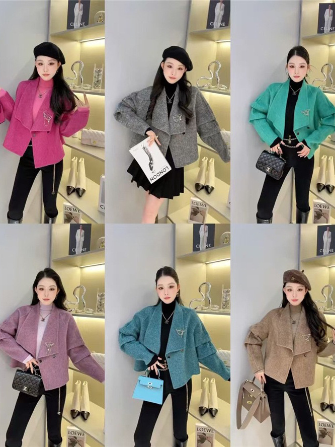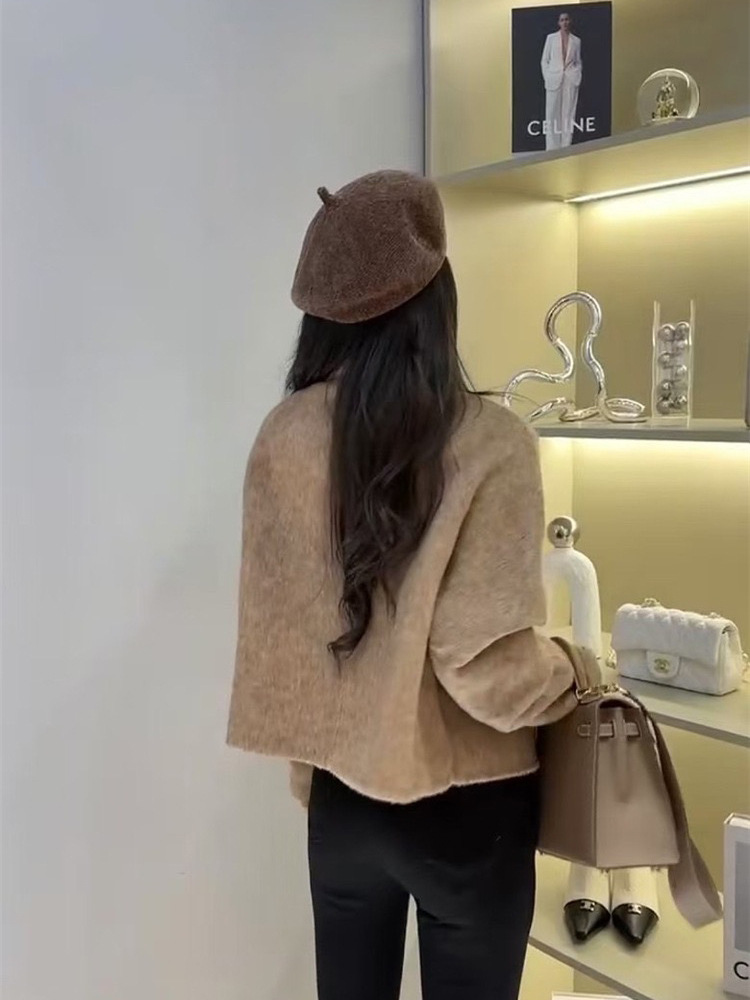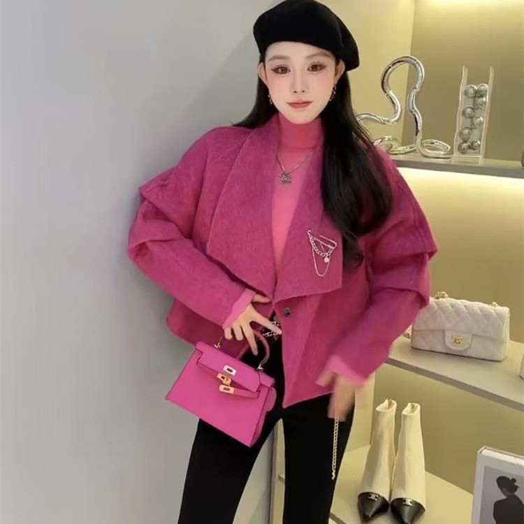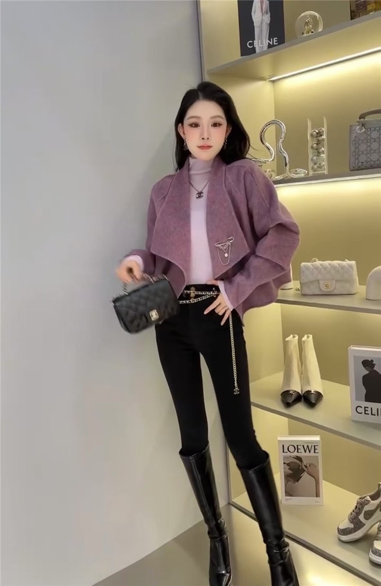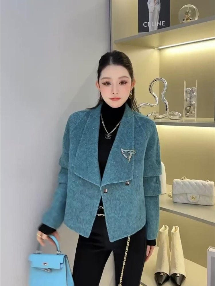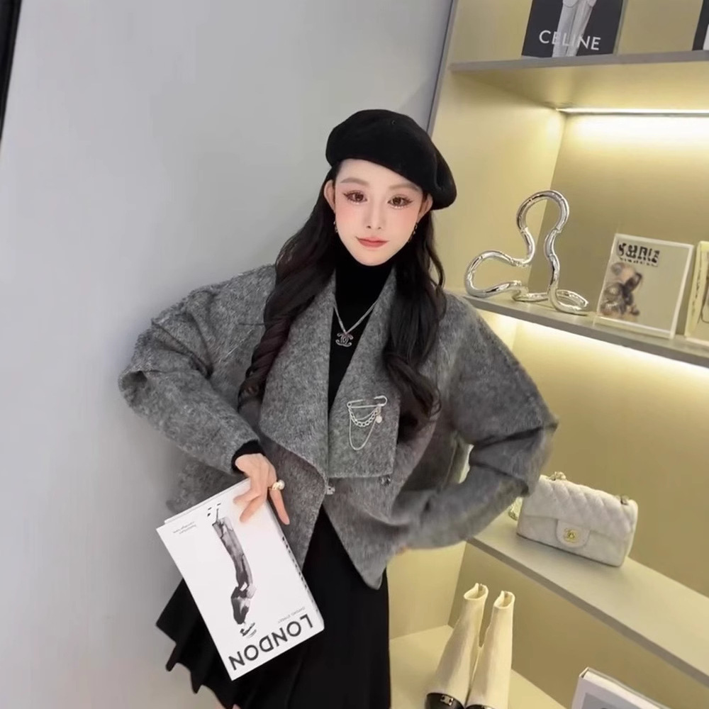 유럽 양면 캐시미어 코트 여자 고급 연령 감소 작은 우아한 숙녀 올 매치 울 코트 쇼트