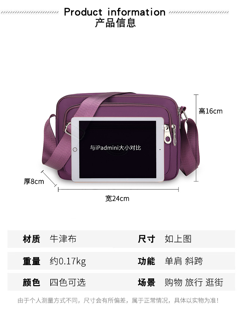 2025 새로운 스타일 가방 중년 및 노인 어머니 가방 옥스포드 천 캔버스 가방 대용량 어깨 가방 크로스 바디 백 여성용 가방