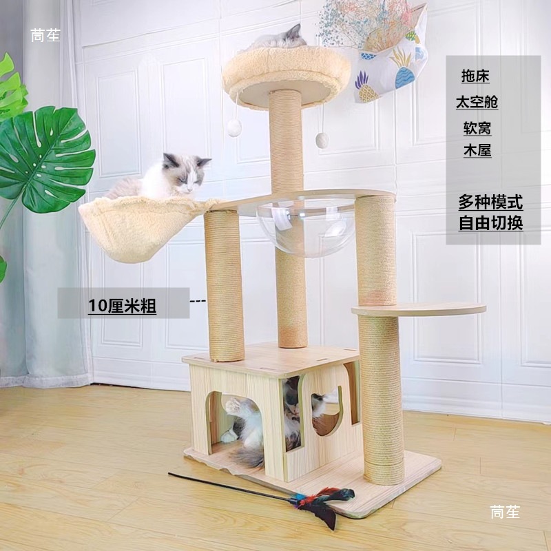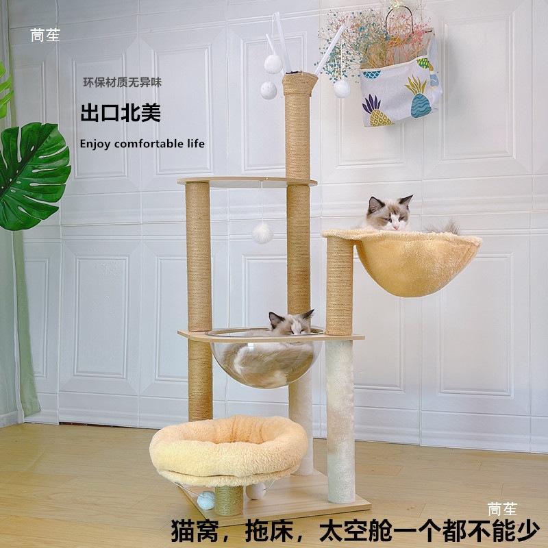 두 개의 둥지와 대걸레 침대가 있는 두꺼운 기둥(분리 가능 및 세탁 가능)