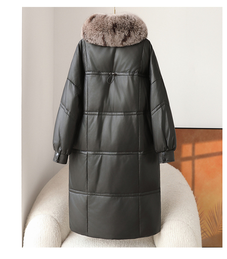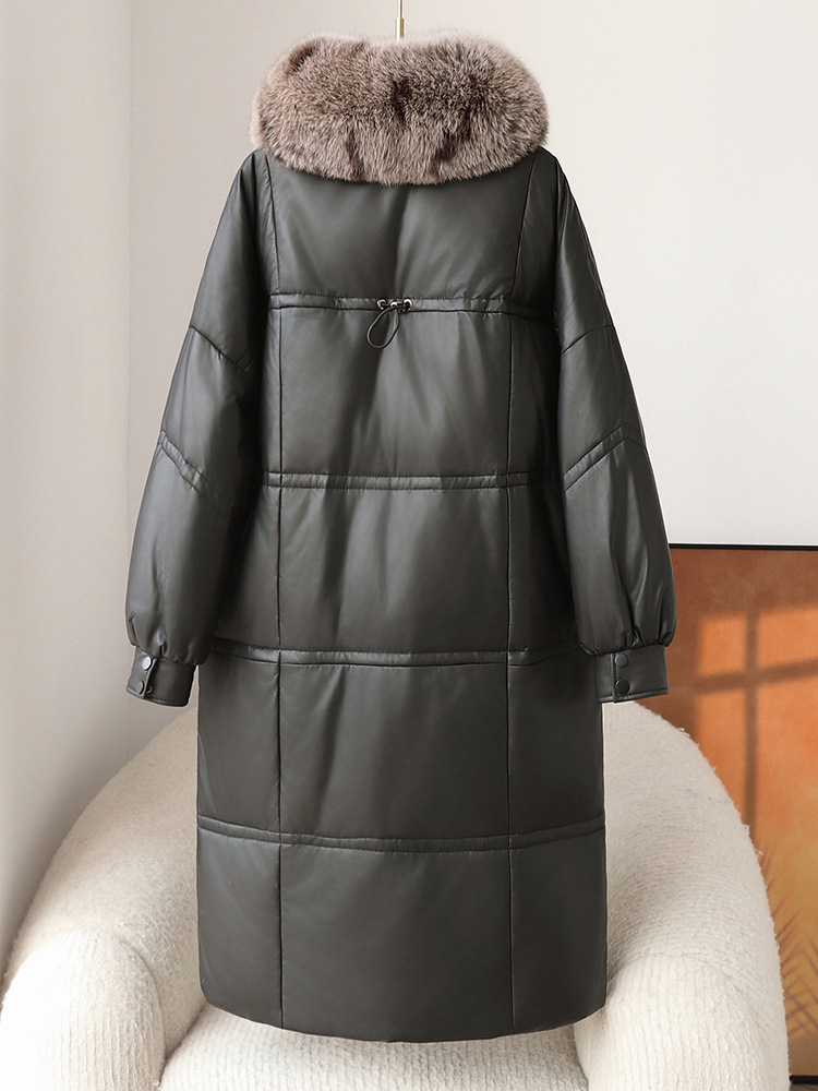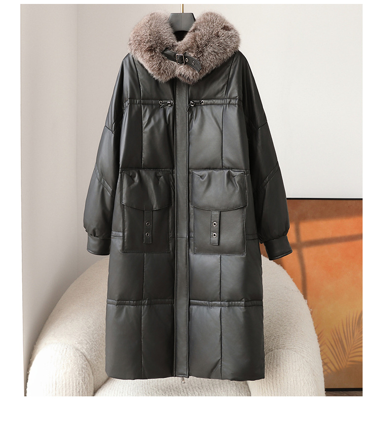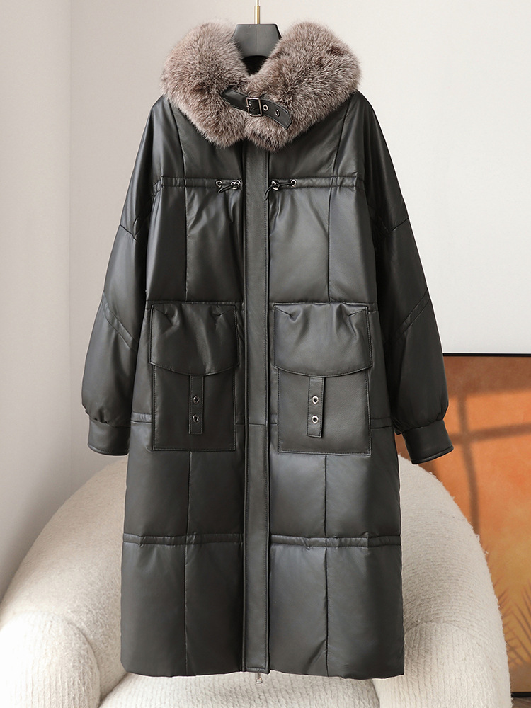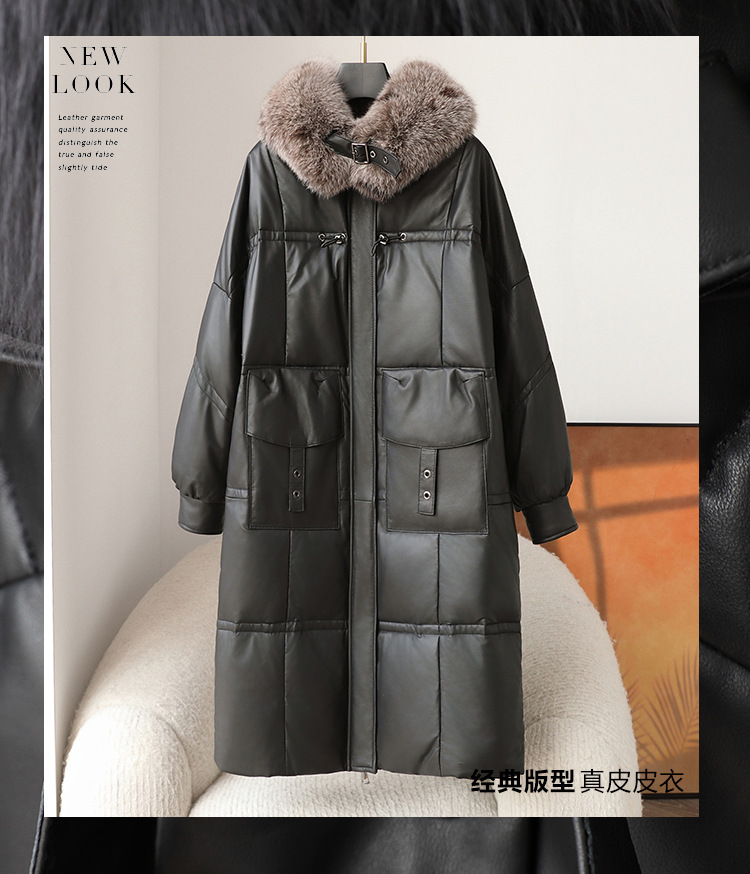 진짜 가죽 양가죽 다운 재킷 여성용 긴 구스 다운 두꺼운 따뜻한 폭스 모피 칼라 느슨한 모피 재킷