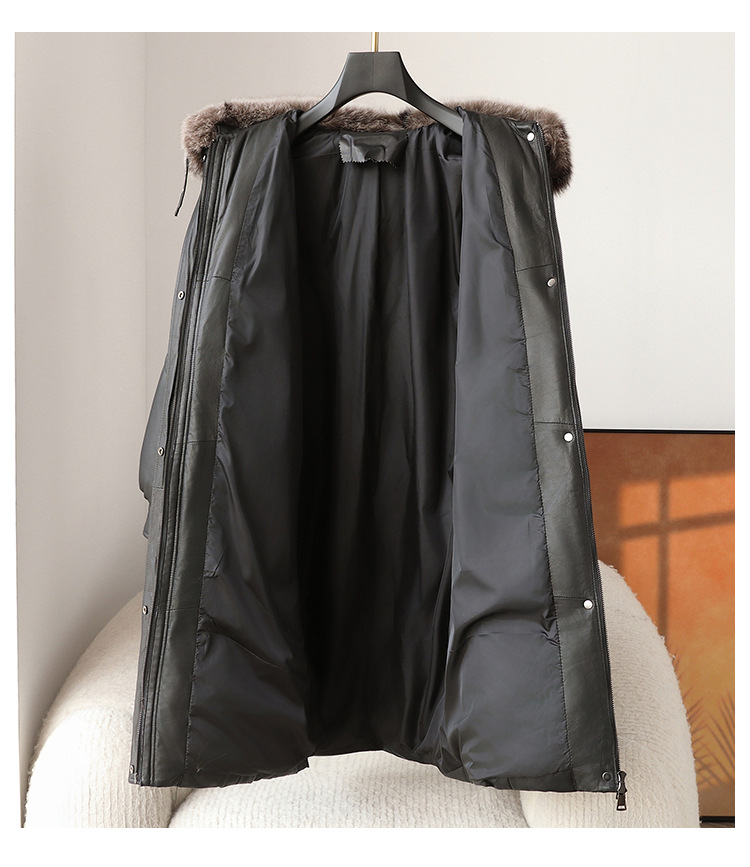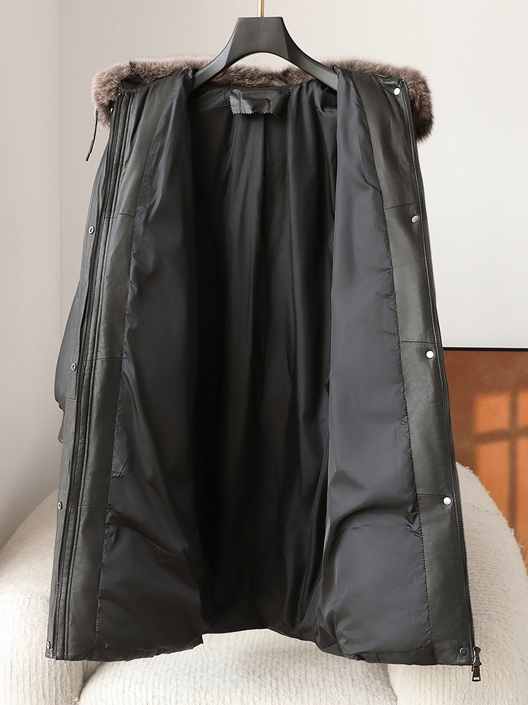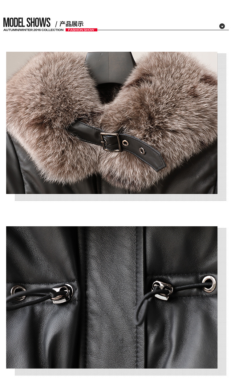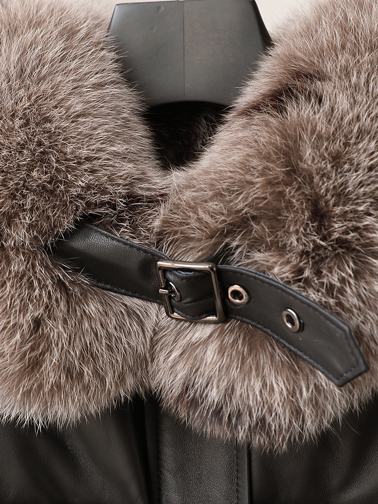 진짜 가죽 양가죽 다운 재킷 여성용 긴 구스 다운 두꺼운 따뜻한 폭스 모피 칼라 느슨한 모피 재킷