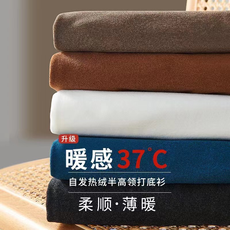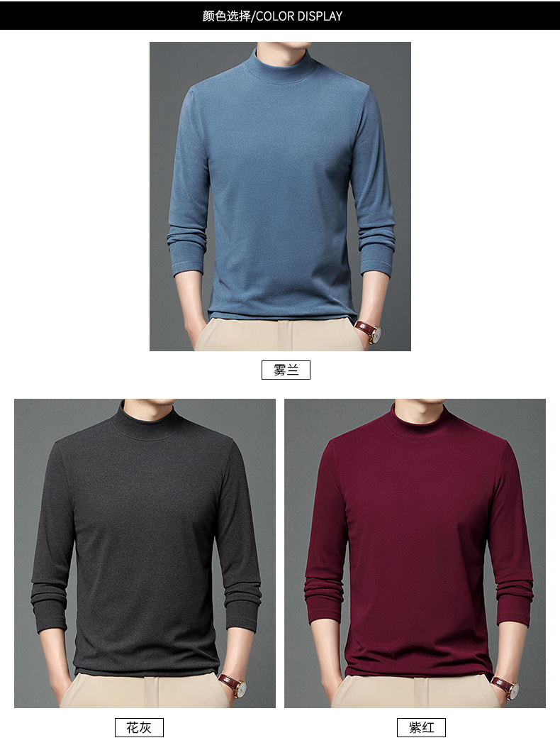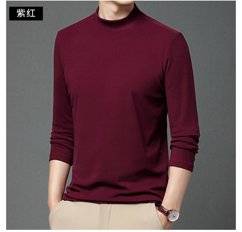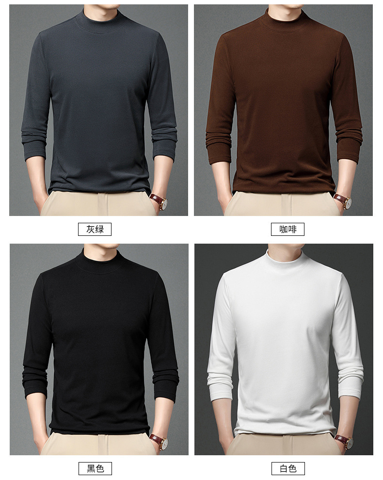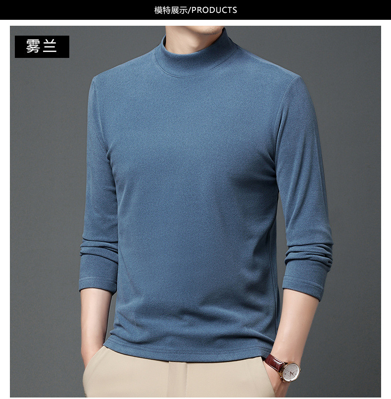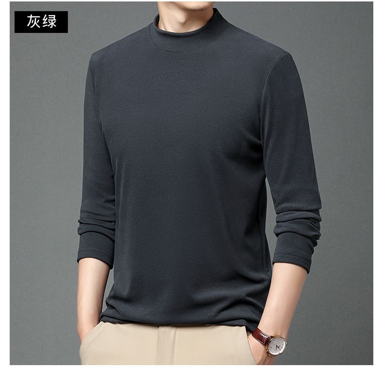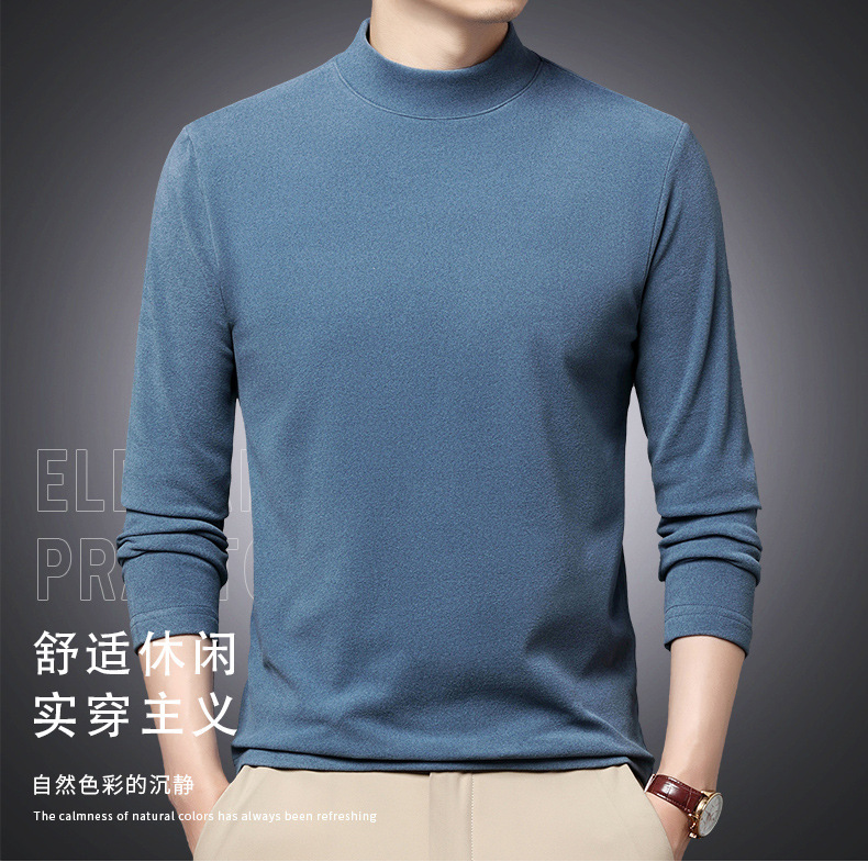 양면 양털베이스 셔츠 남자의 반 높은 칼라 긴 소매 티셔츠 봄과 가을 탑 두꺼운 속옷 남자의 따뜻한 가을 옷