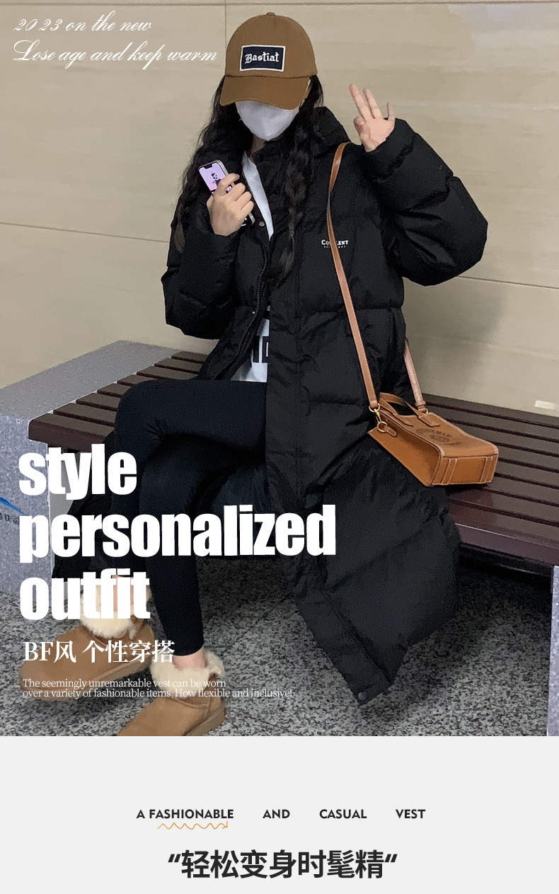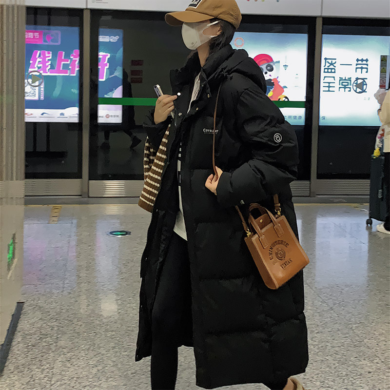 겨울은면 패딩 재킷 여성의 길고 느슨한 오버 사이즈 후드 패딩 재킷 2024 새로운면 패딩 재킷