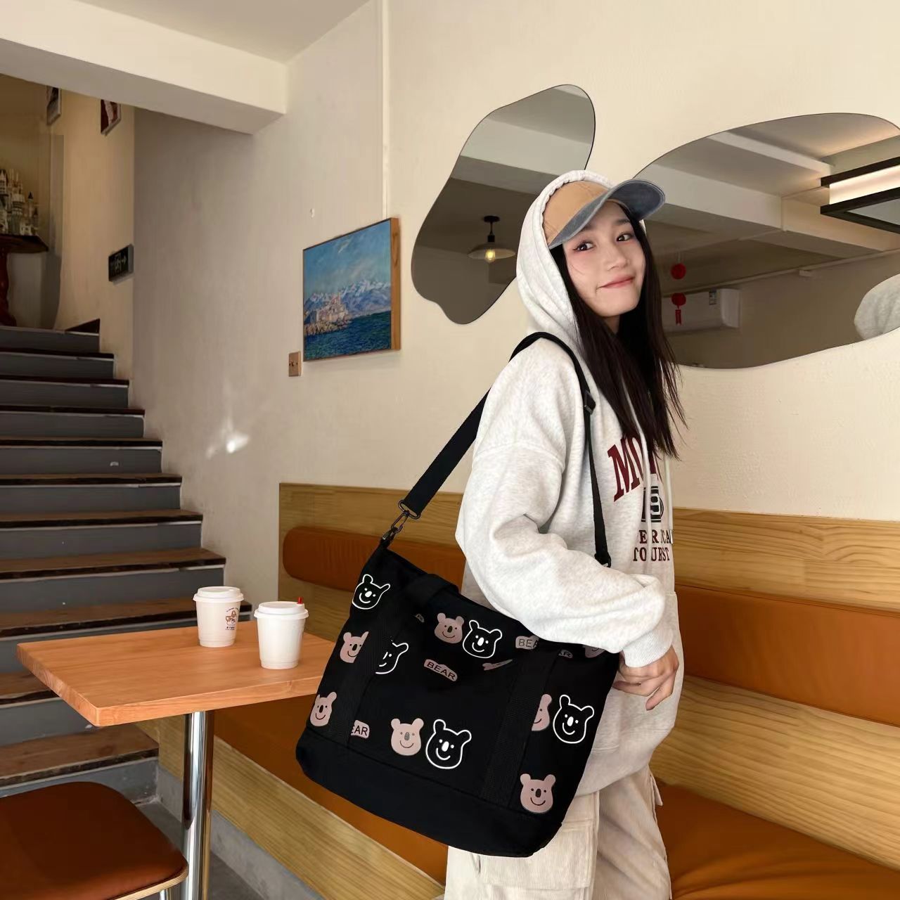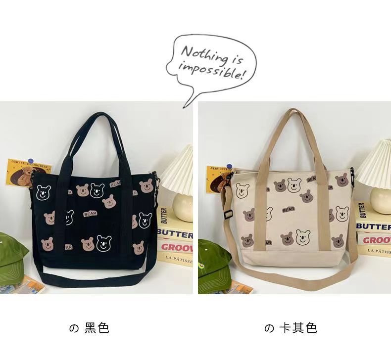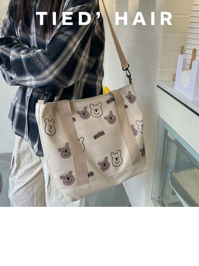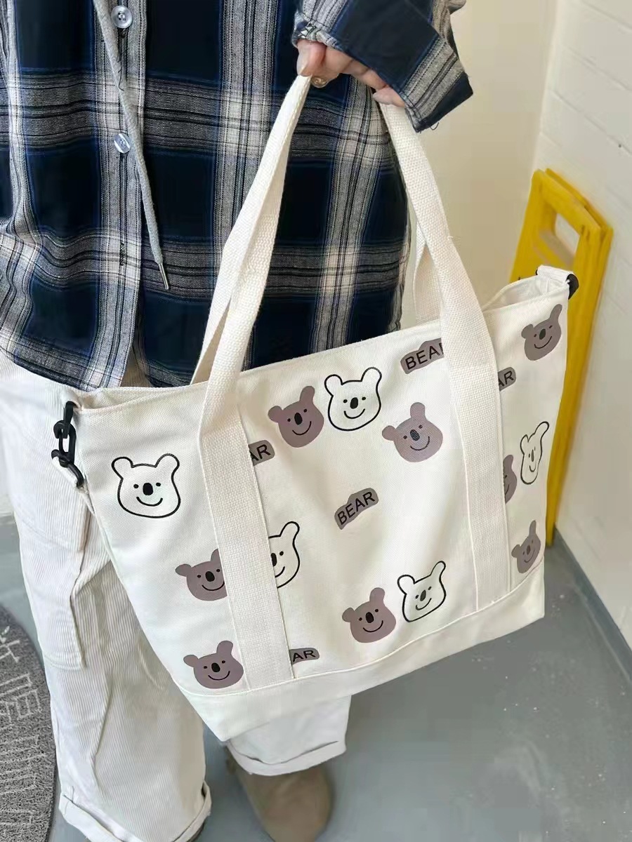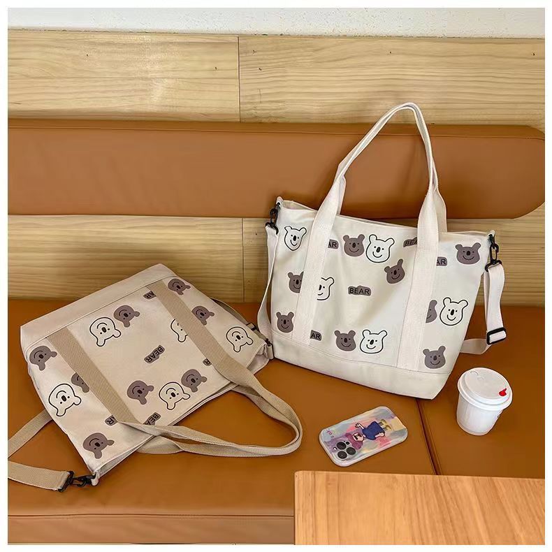 대용량 올 매치 캔버스 숄더 백 여성 학생 남성 가방 휴대용 쇼핑백 귀여운 AB 베어 가방 도매