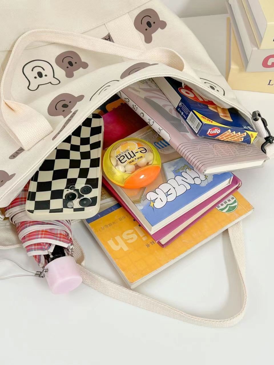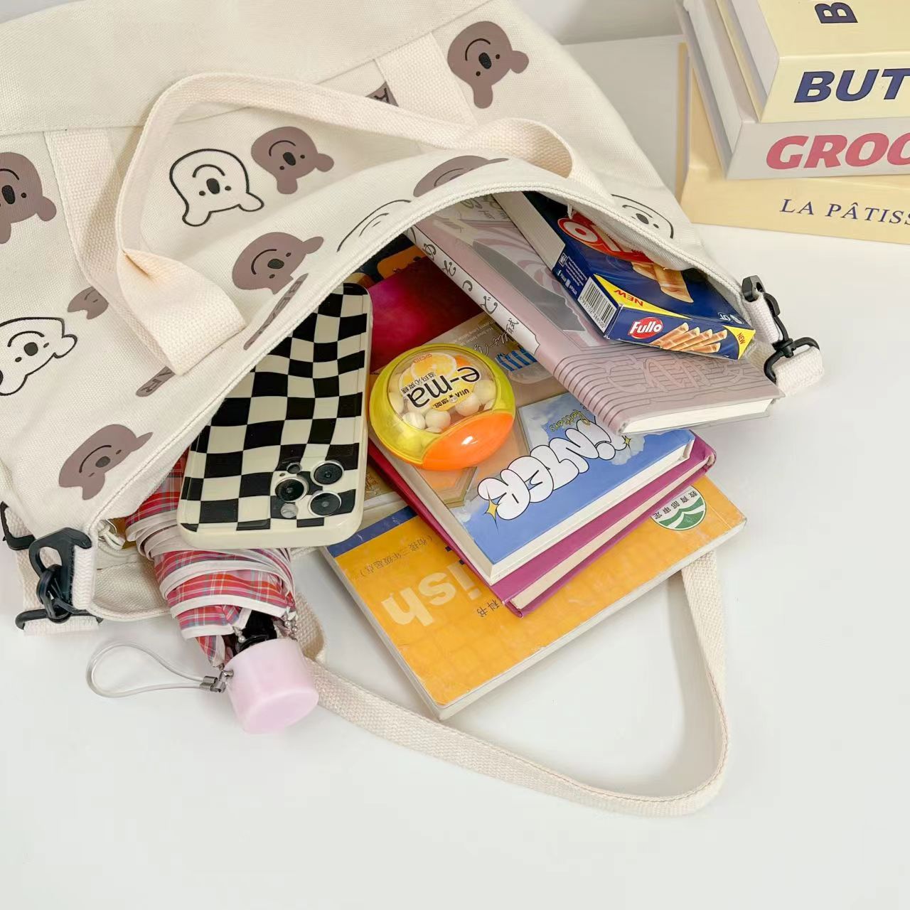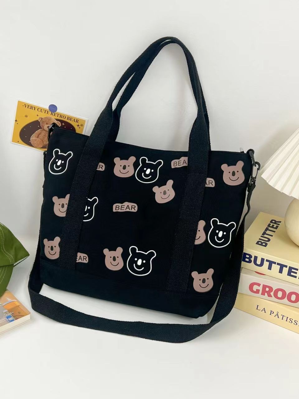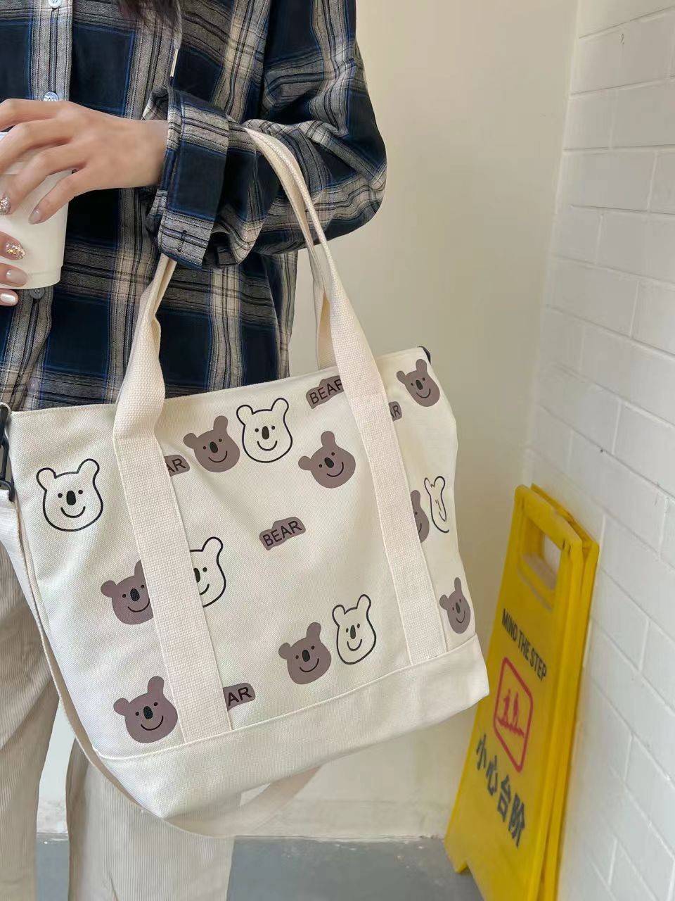 대용량 올 매치 캔버스 숄더 백 여성 학생 남성 가방 휴대용 쇼핑백 귀여운 AB 베어 가방 도매