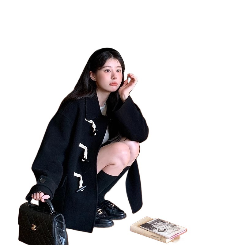 고급 코너 버튼 짧은 양모 코트 여성의 가을 및 겨울 새면 스몰 사이즈 용 두꺼운 모직 코트