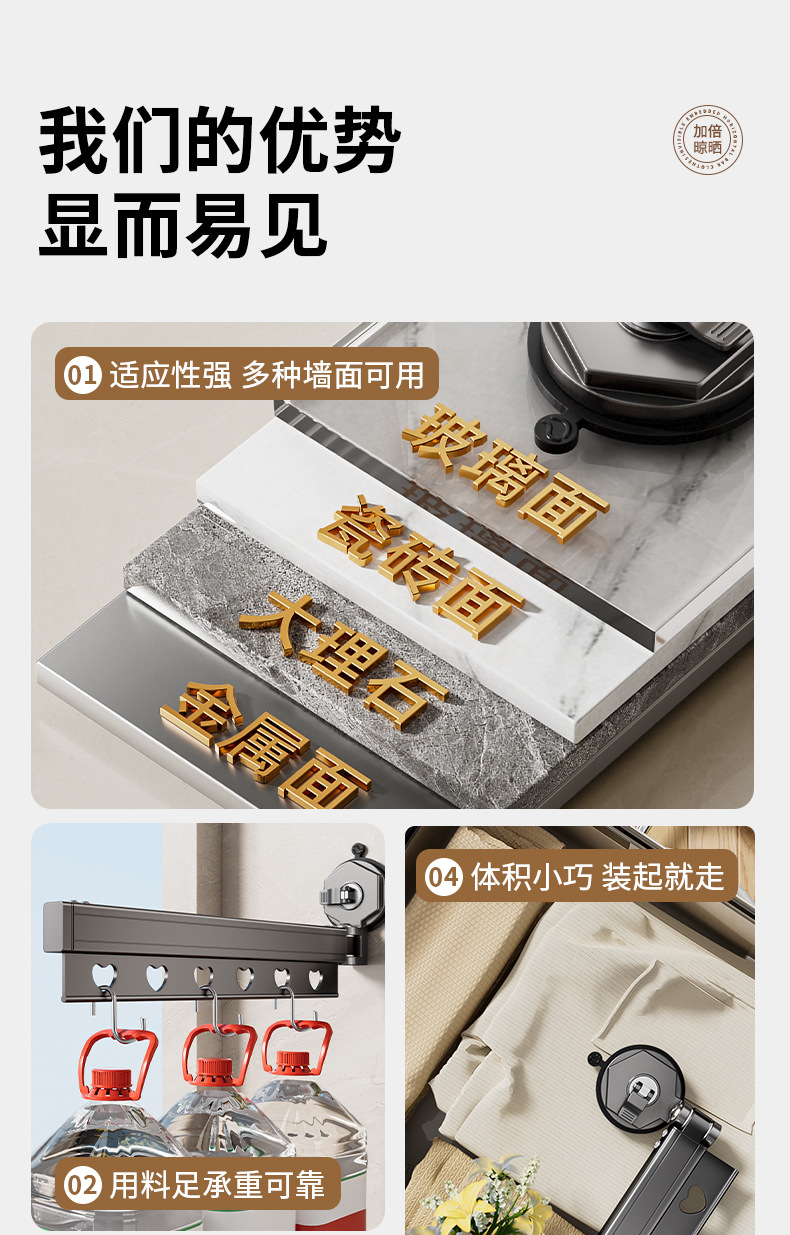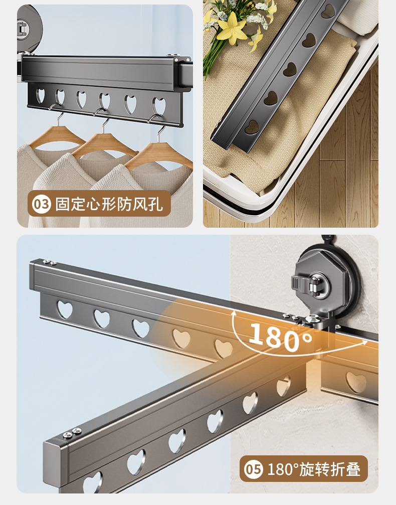 흡입 컵 접이식 텔레스코픽 의류 건조대
