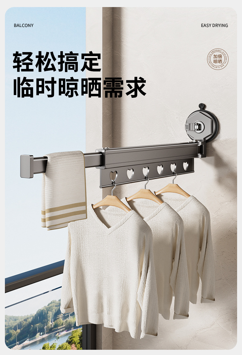석션 형 접는 건조 랙 발코니 가구 옷 건조 봉 이불 아티팩트 보이지 않는 옷 선반