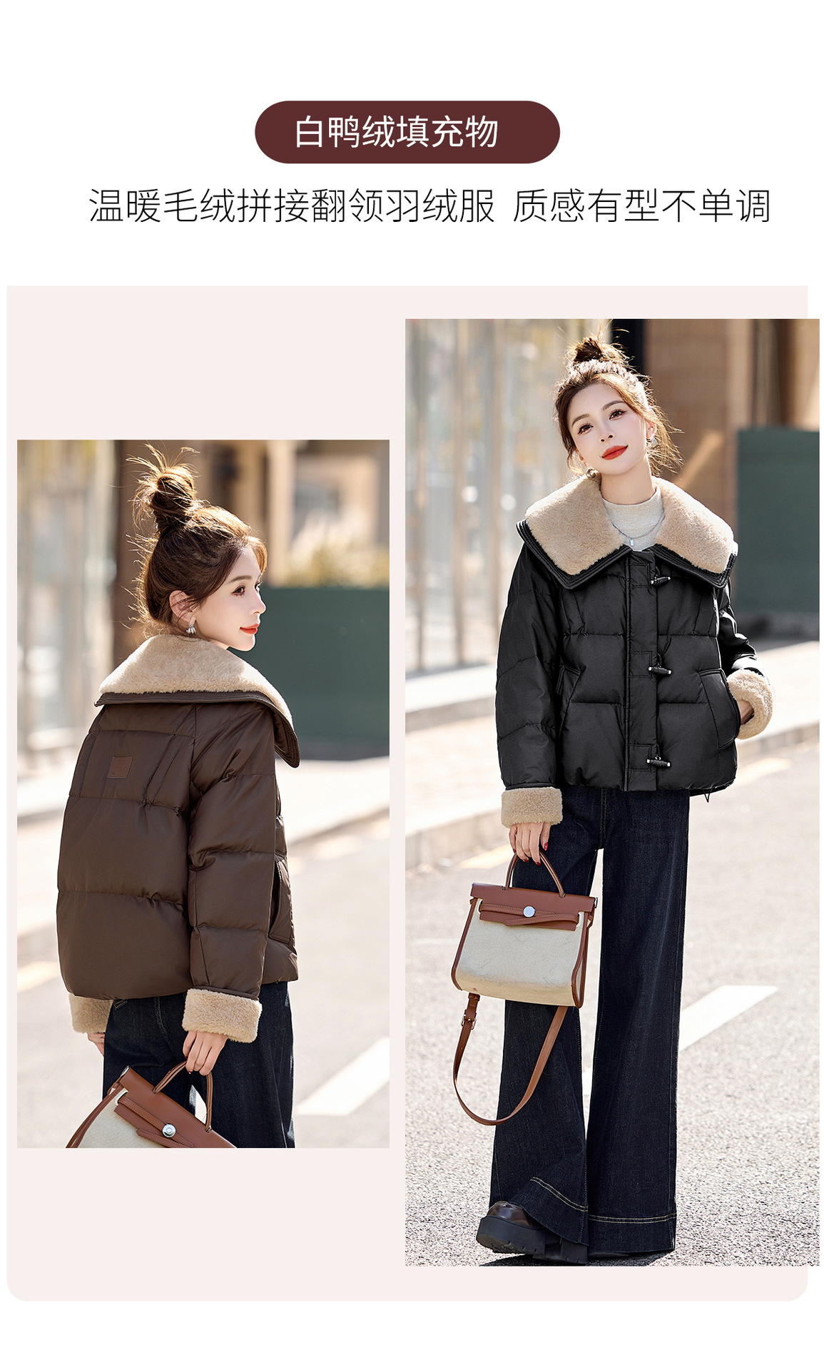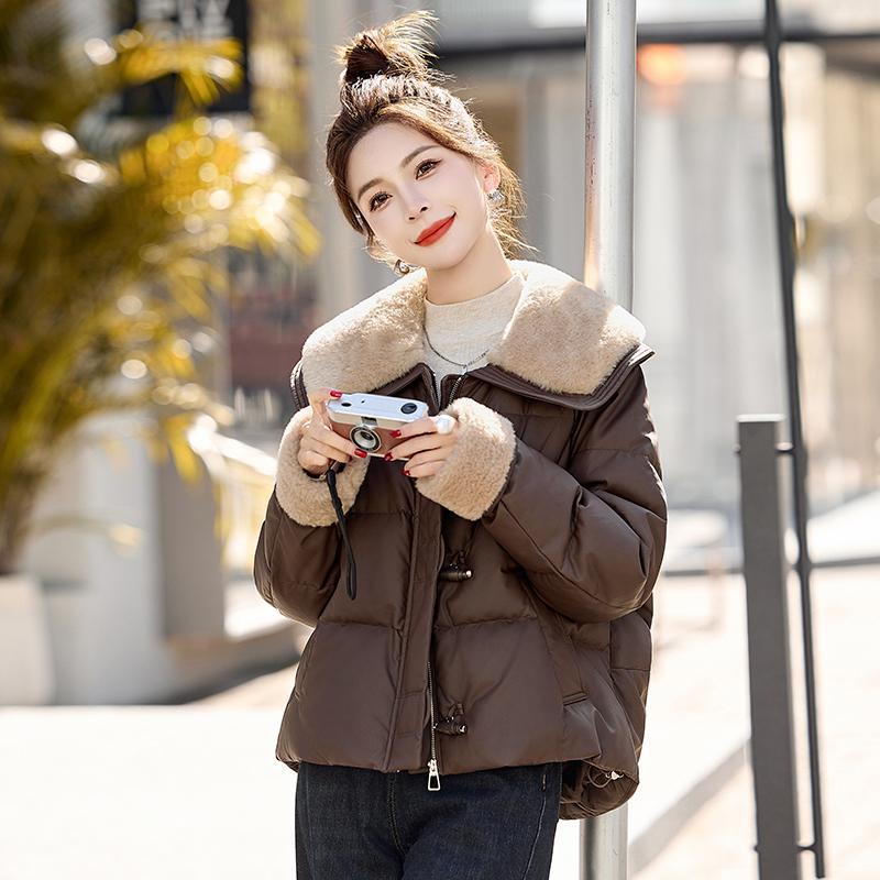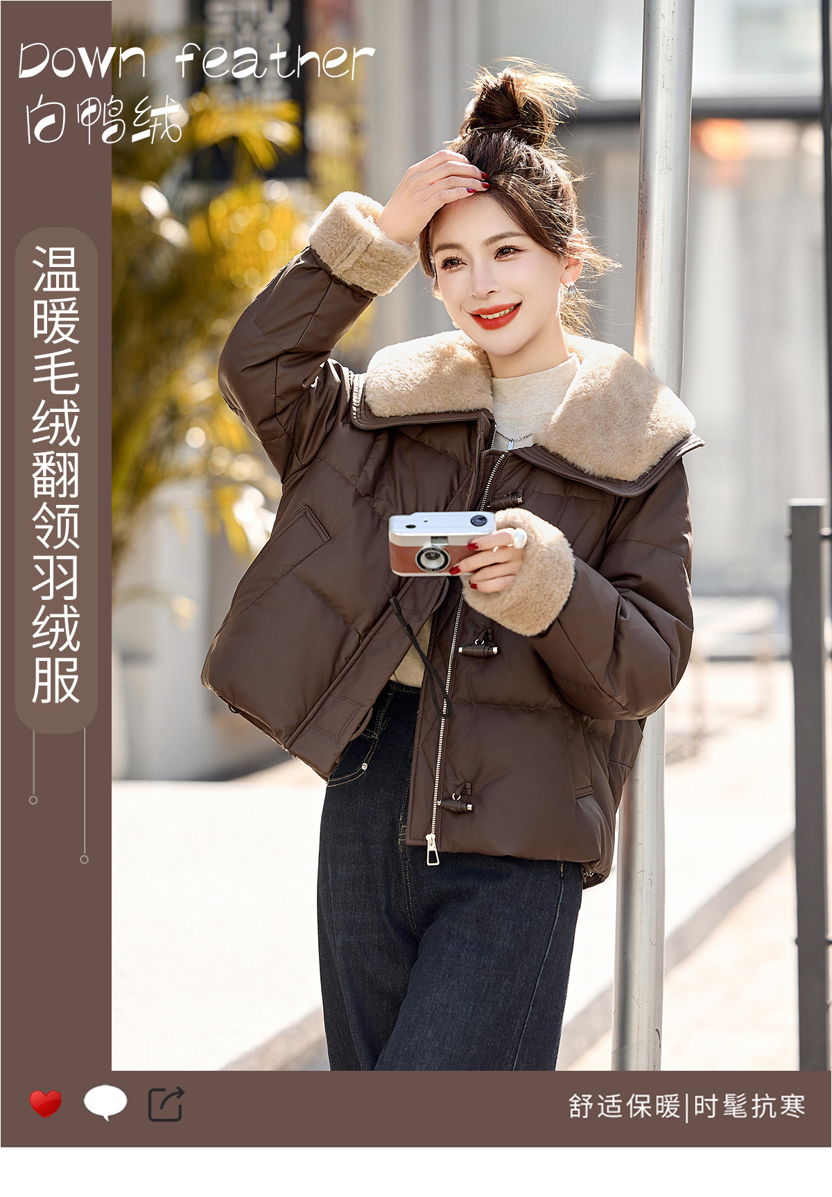 여성용 짧은 다운 재킷 2025년 겨울 신상품, 작은 체형을 위한 고급스럽고 세련된 디자인의 두꺼운 화이트 덕다운 코트
